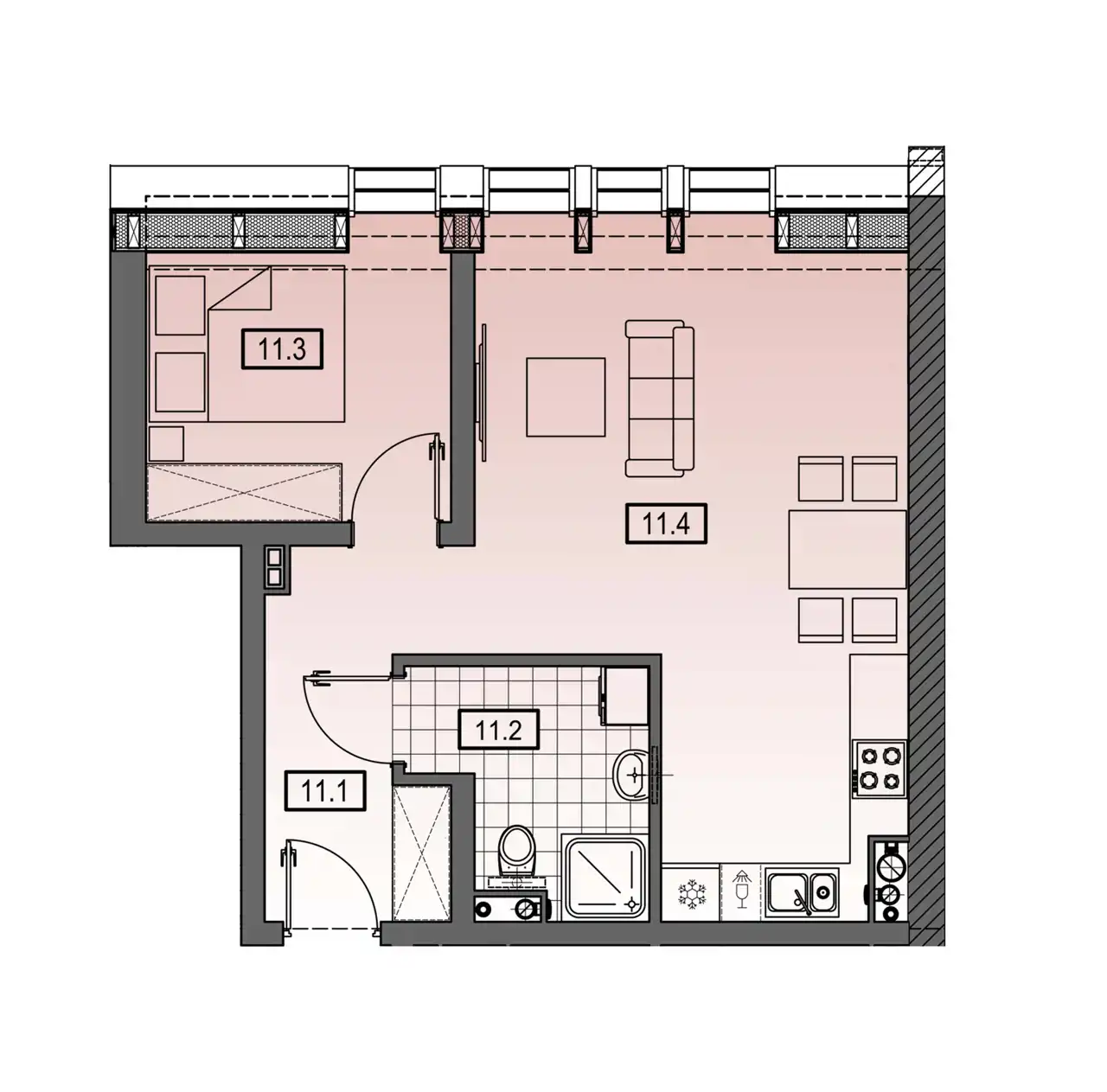 - Charakterystyka mieszkania 45.21 m2, 2 pokoje