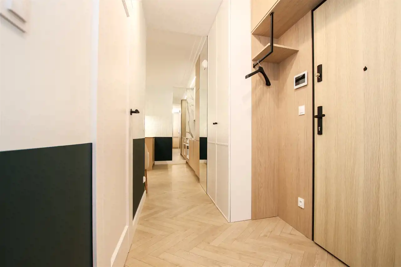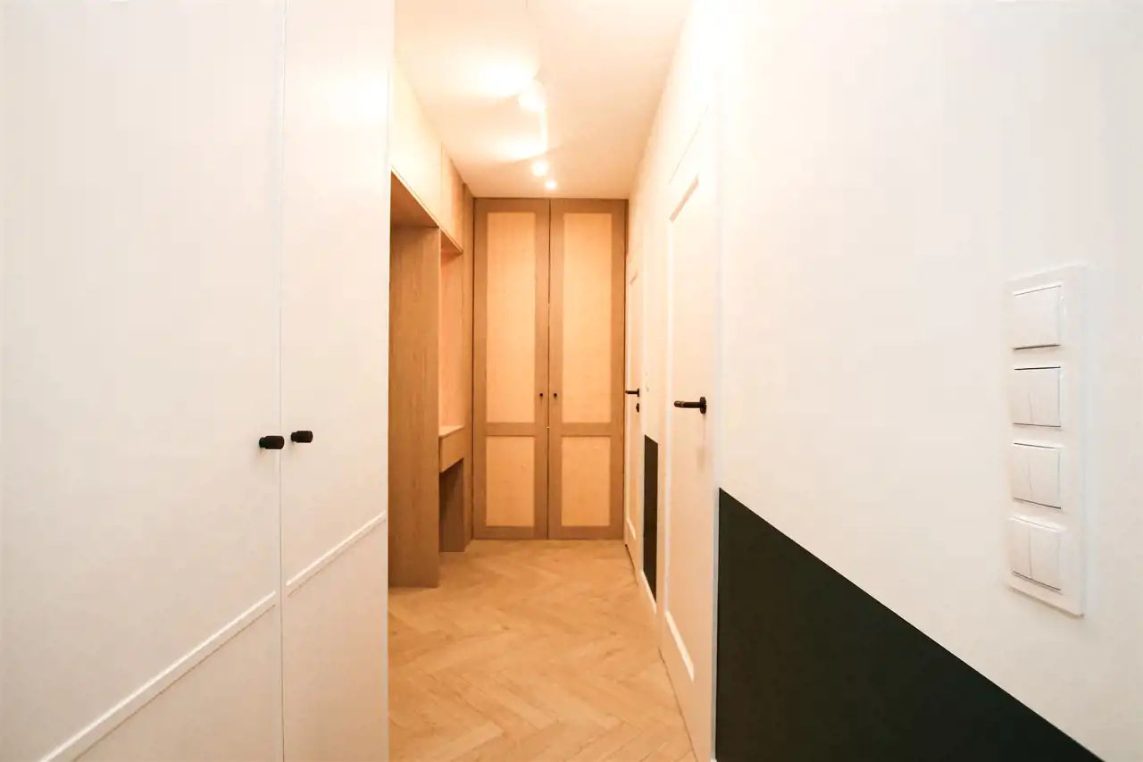 - Korytarz z pojemnymi szafami na odzież wierzchnią i niezbędne rzeczy.