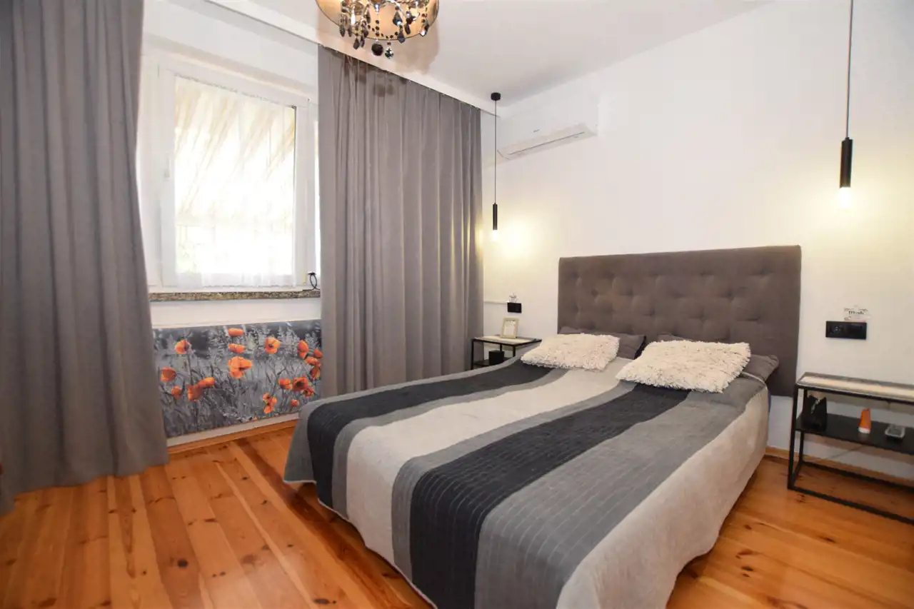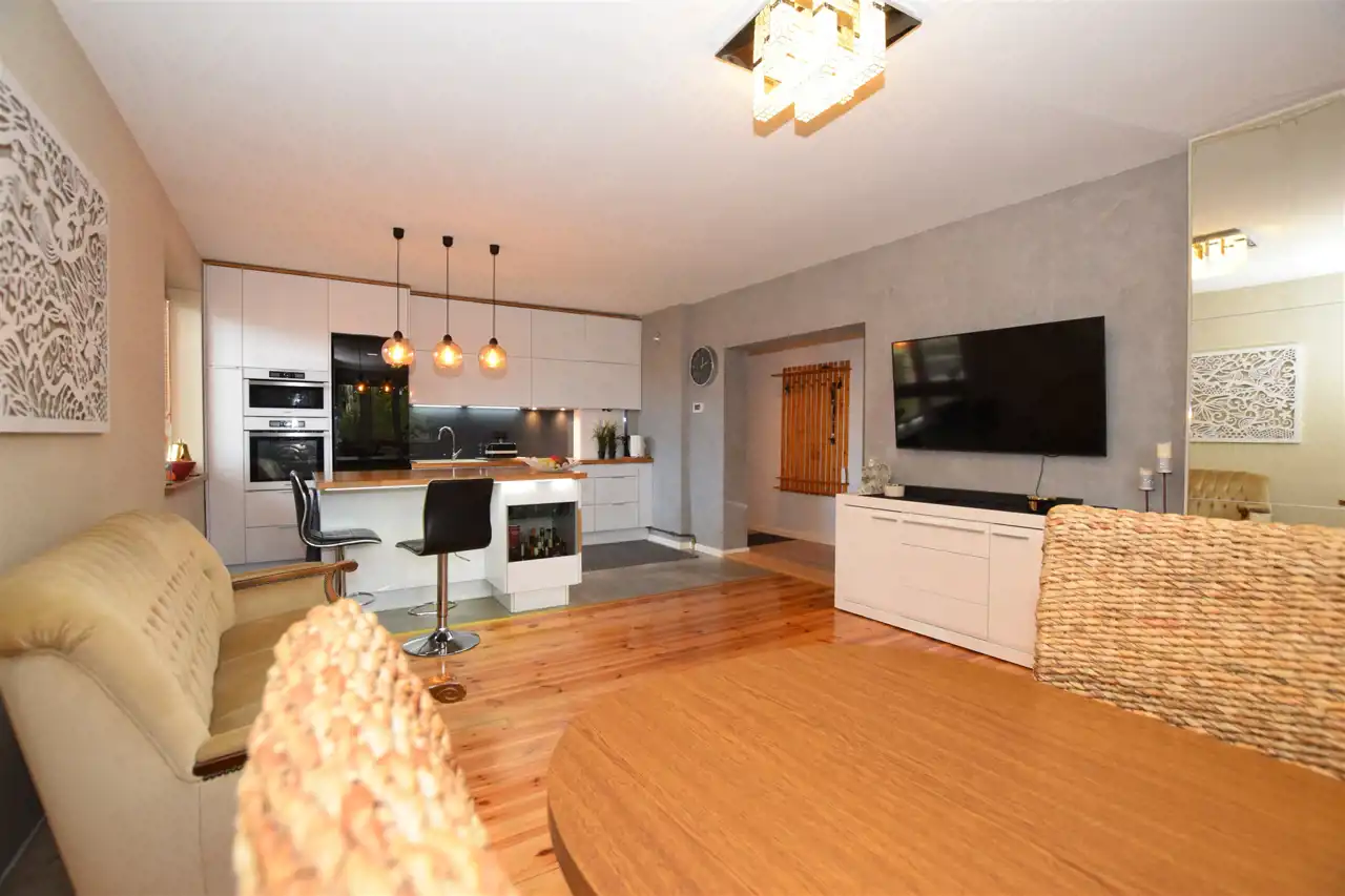 - Dodatkowo: duży taras wyłożony deską kompozytową, wyposażony w rozkładaną markizę