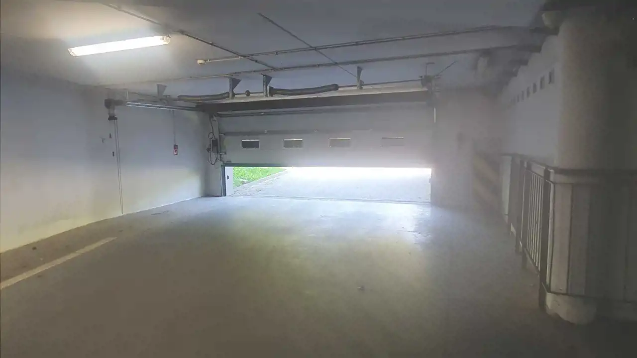 Garaż monitorowany, kamery wewnętrzne i zewnętrzne, brama zamykana na pilota.
