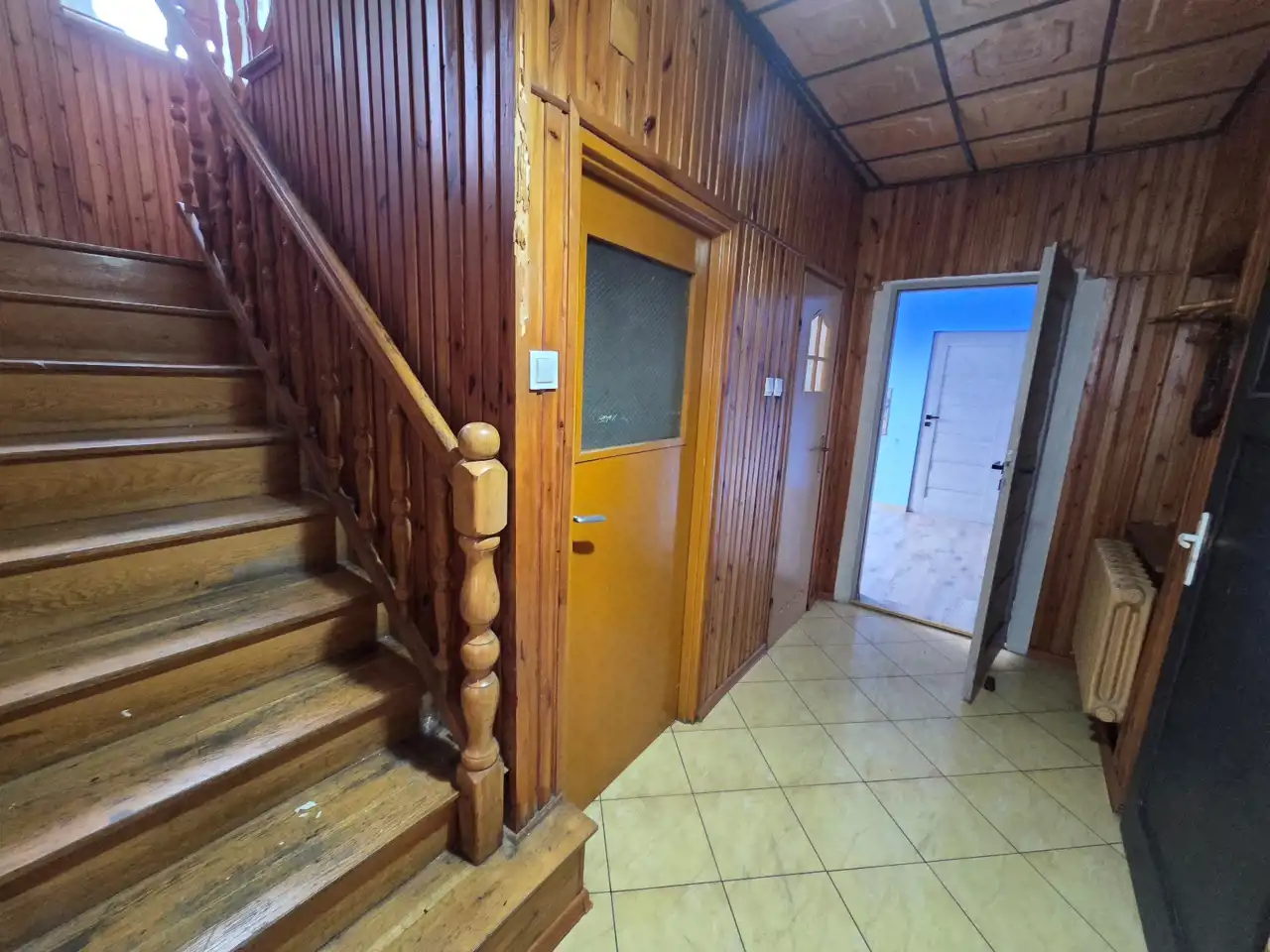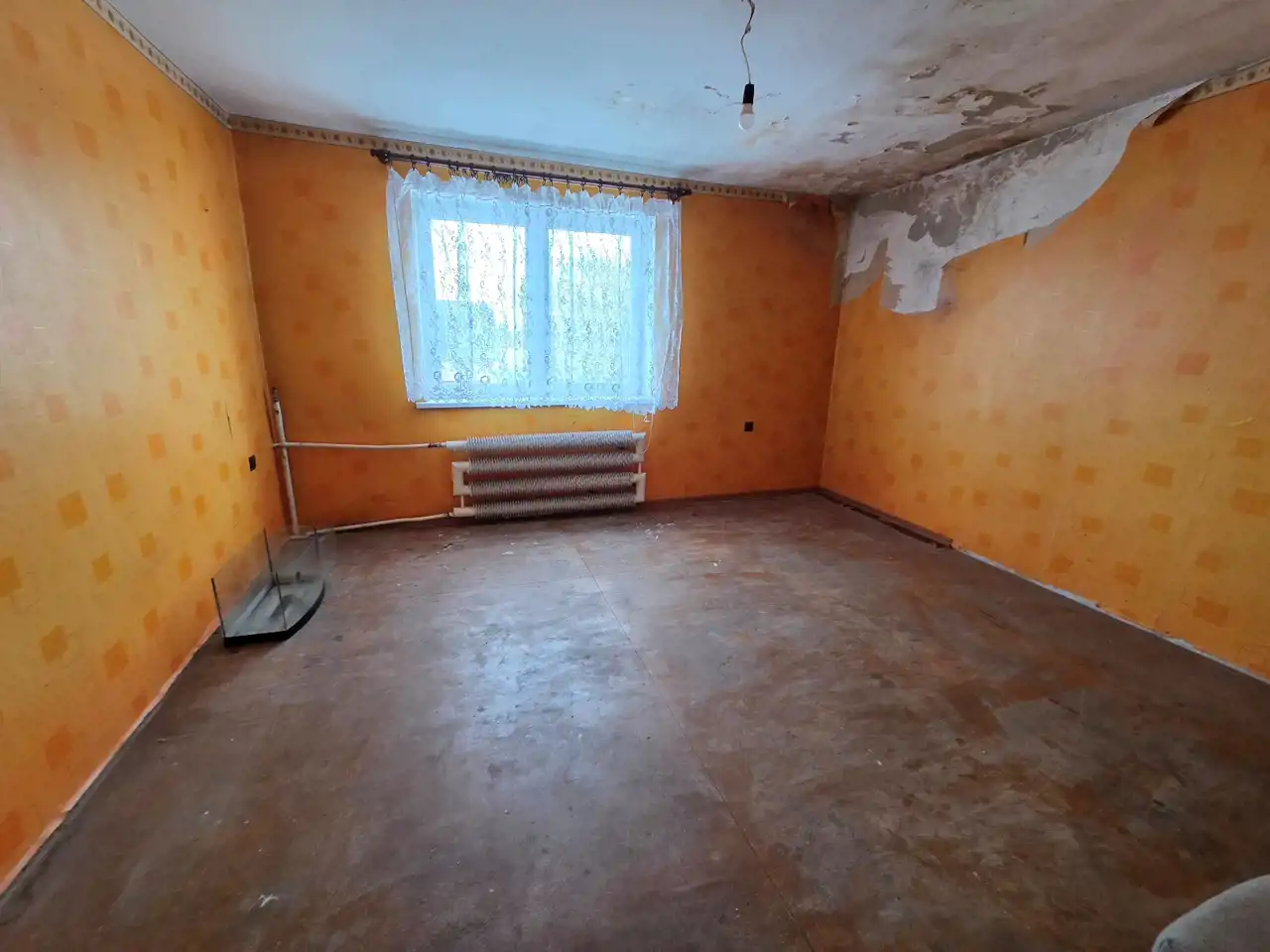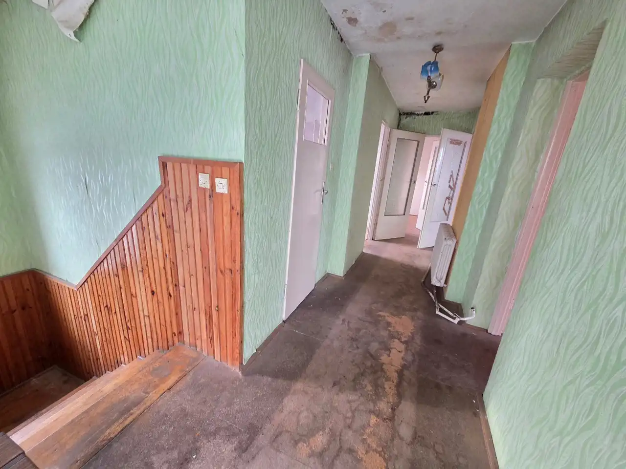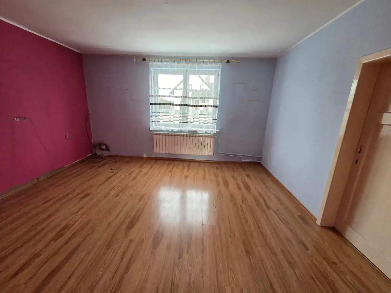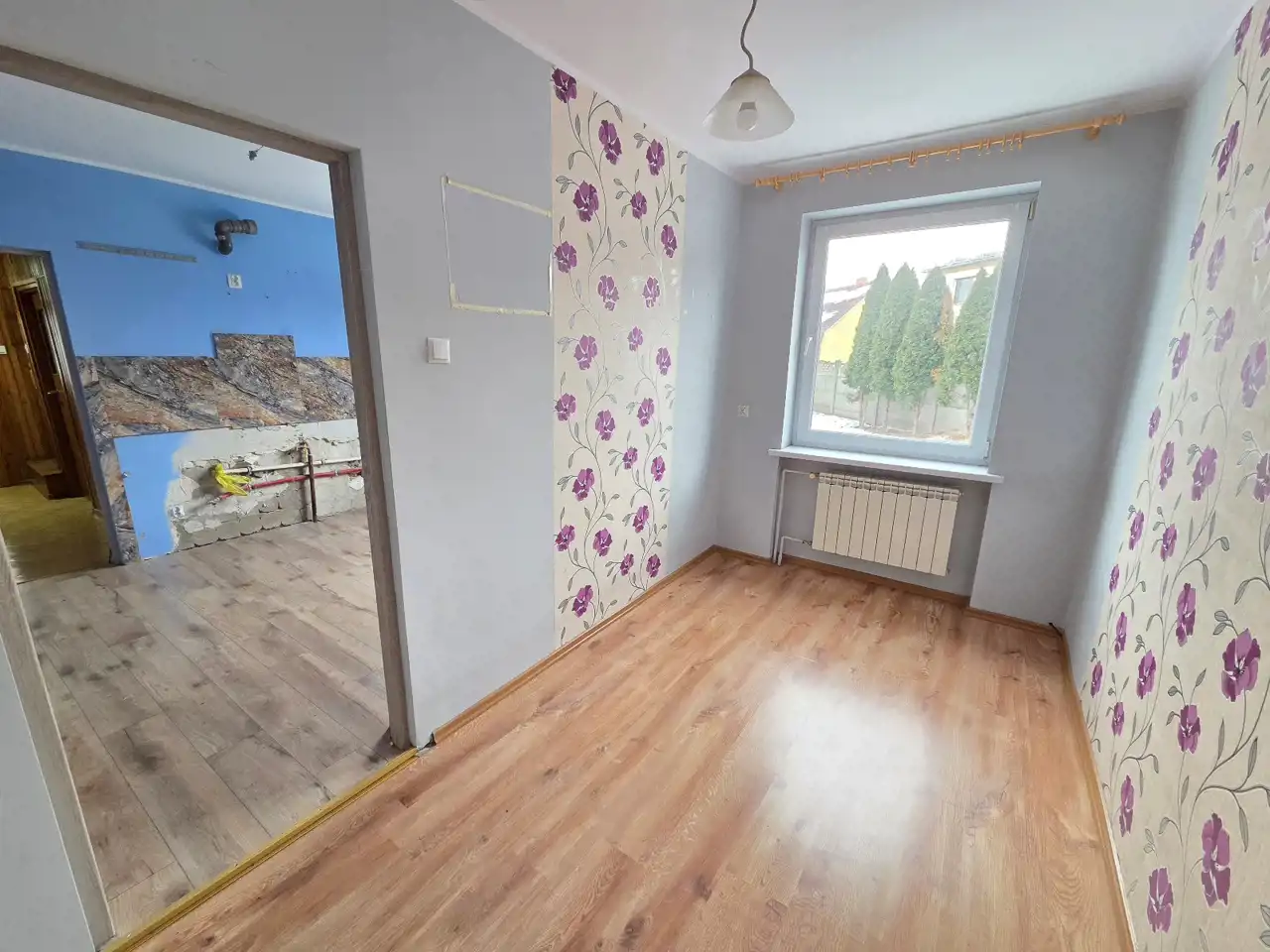 OPIS: dwukondygnacyjny dom w zabudowie bliźniaczej, podpiwniczony. Materiał budowlany - cegła i pustak ceramiczny, dach płaski, pokryty papą. Ściany działowe - cegła dziurawka, strop betonowy. Teren nieruchomości zagospodarowany - od frontu teren zielony, ogrodzony płotem z siatki, od tyłu budynku przęsła betonowe.