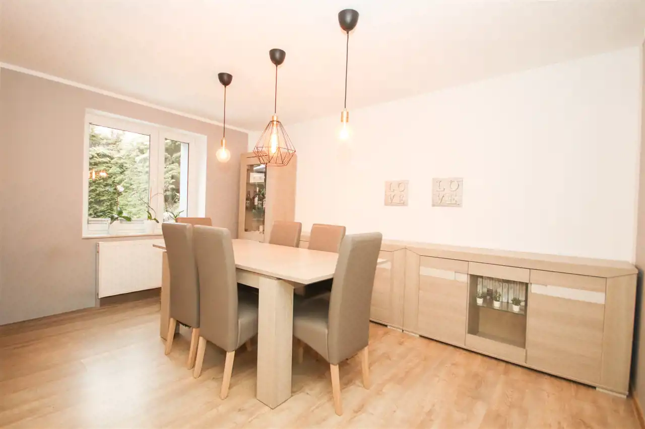 Na sprzedaż funkcjonalny, dom w zabudowie szeregowej, położony w spokojnej i zielonej miejscowości Komnino.