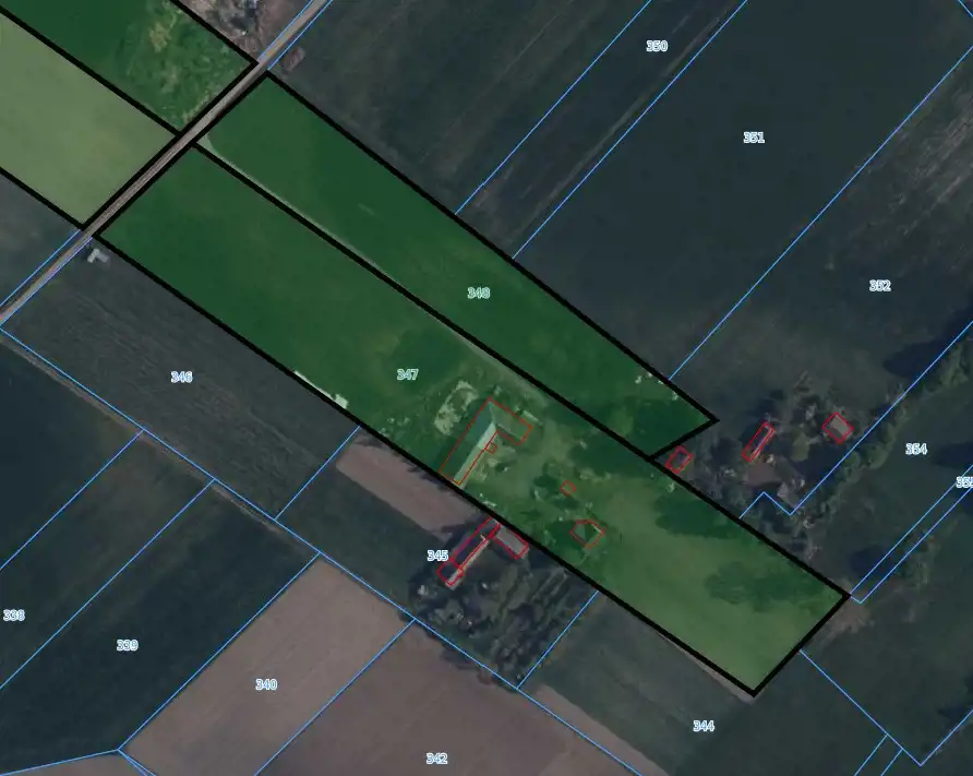 - Działka nr 347 w części stanowi zabudowane siedlisko, w części zaś użytkowana jest rolniczo.
