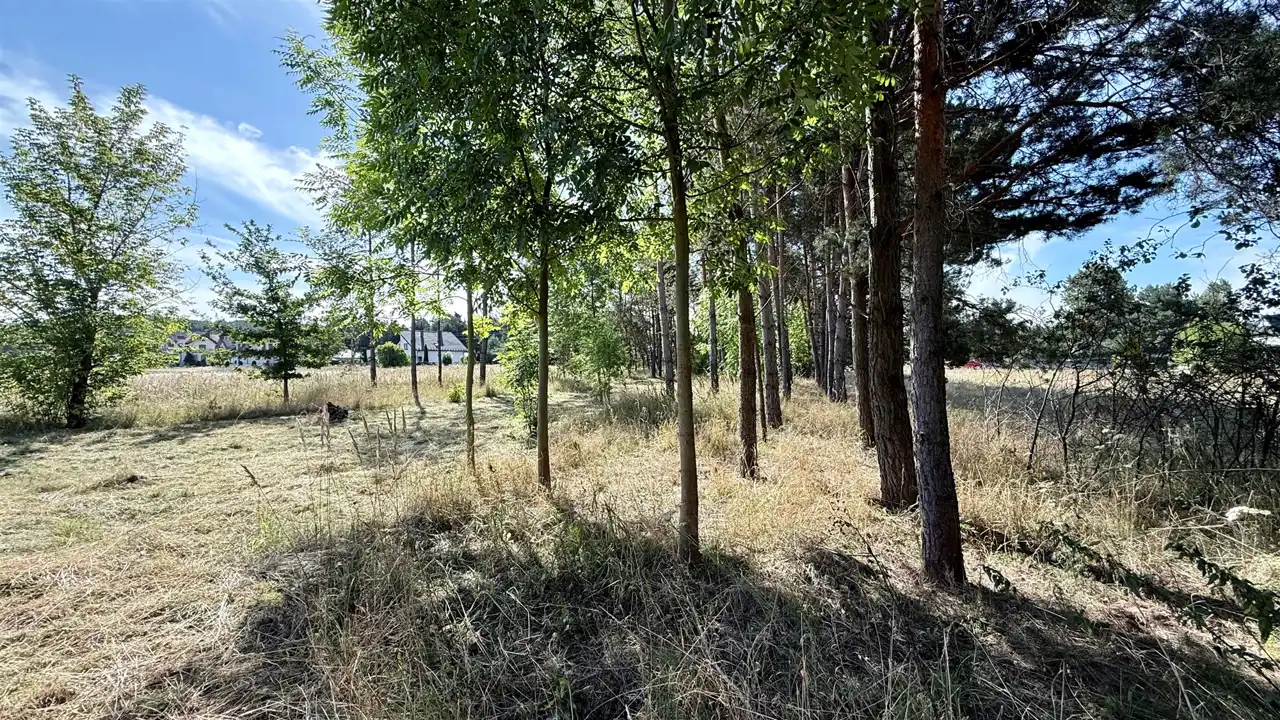 Działka kształtem zbliżona do prostokąta, rozszerzająca się -niezagospodarowana, nie ogrodzona. Porośnięta trawą, z licznymi nasadzeniami drzew.