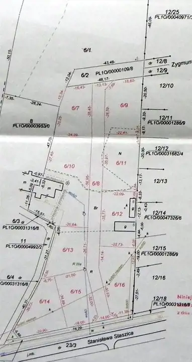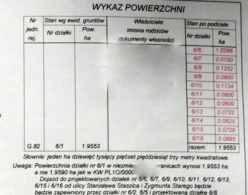 Działki te oznaczone są numerami: 6/7, 6/9, 6/10, 6/11, 6/12, 6/13.