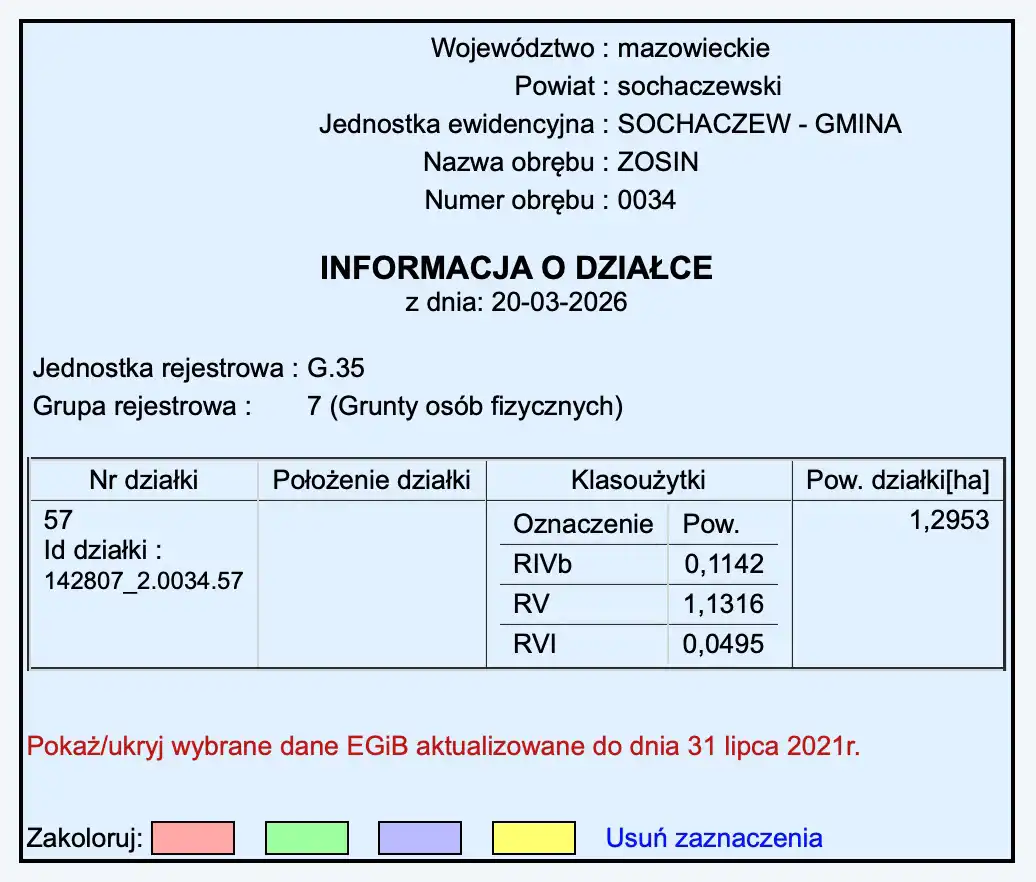 Na sprzedaż działka rolna o powierzchni 12953 m², położona w spokojnej i rozwijającej się okolicy w miejscowości Zosin (gmina Sochaczew).
