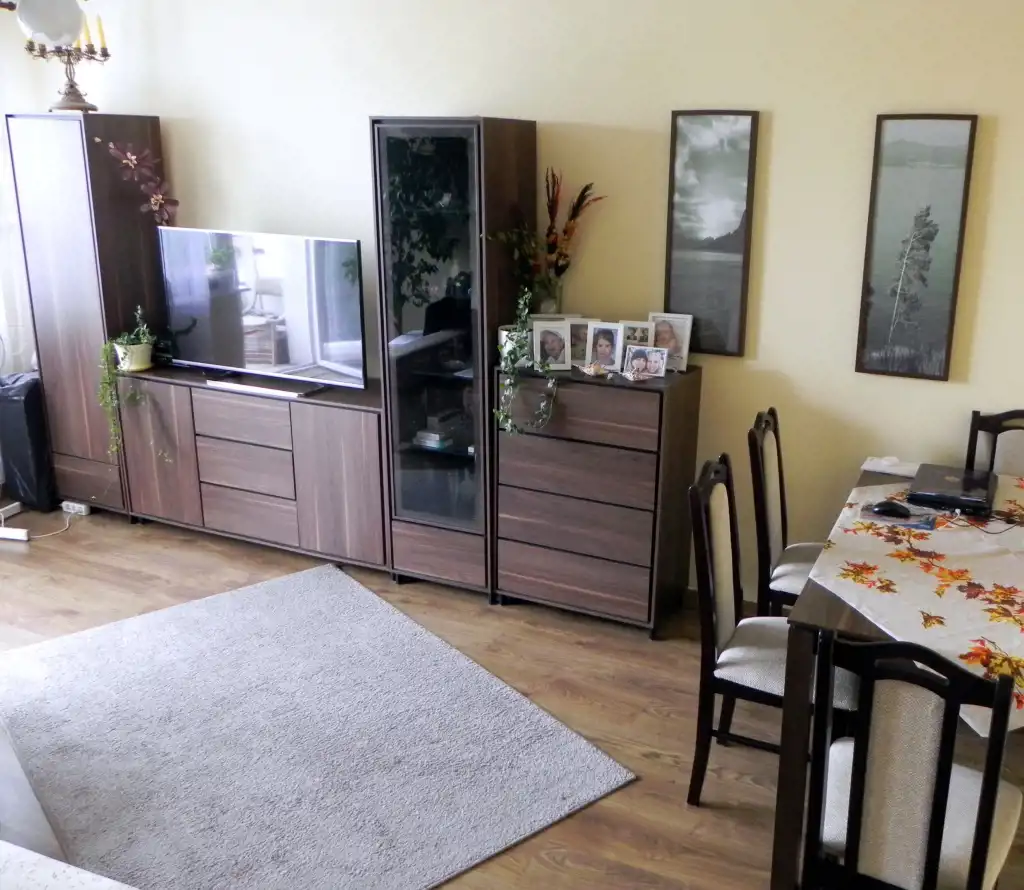 Składa się ono z: kuchni,salonu, przedpokoju, łazienki, wc i trzech pokoi.