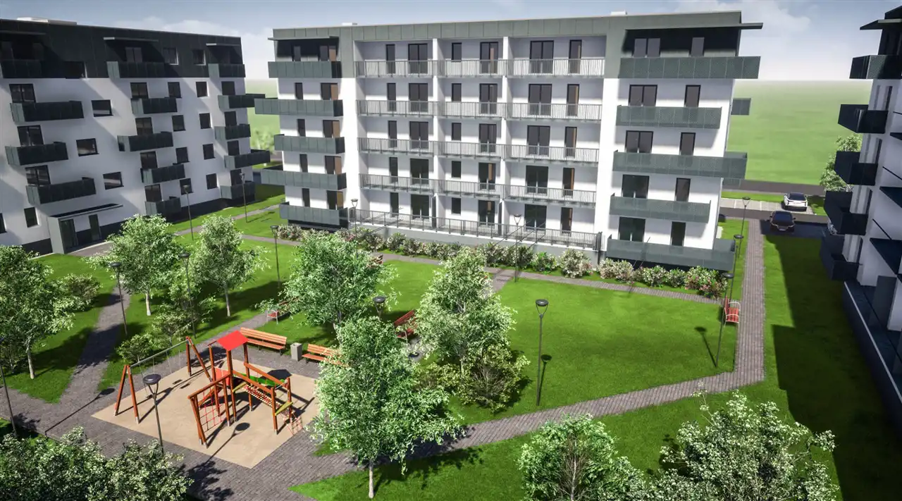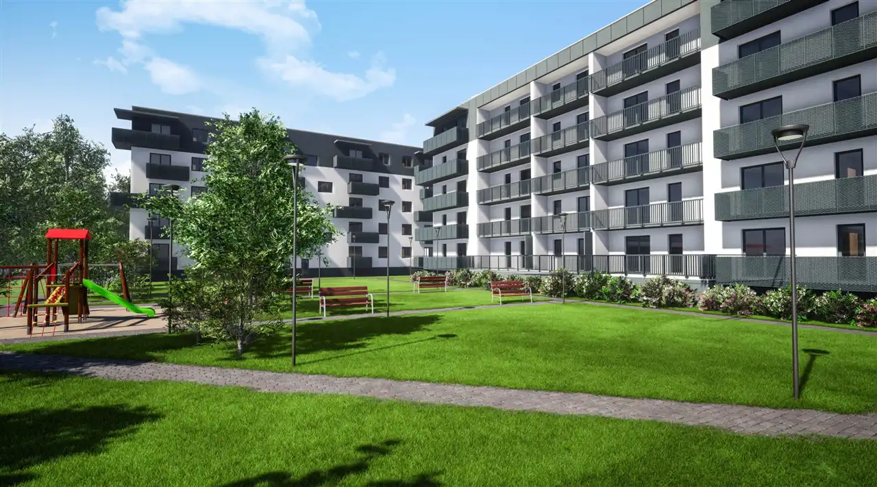 Osiedle będą tworzyć trzy pięciokondygnacyjne budynki, w których można znaleźć mieszkania o powierzchni od 30 do 62 m2. Szczególny nacisk został położony na funkcjonalność lokali oraz wysoki standard wykończenia. Wraz z budową osiedla powstanie pełna infrastruktura, z drogami wewnętrznymi, alejkami, zielonymi skwerami, siłownią zewnętrzną i placem zabaw. W pobliżu inwestycji znajdziesz: przystanek MZK (vis a vis budynku), dwie stacje benzynowe, myjnie samochodową, szkoły, przedszkole, punkty usługowe, przychodnie, apteki i liczne sklepy. Wszystko, co najważniejsze jest w zasięgu ręki, codzienne zakupy możesz zrobić blisko domu. Wykorzystanie nowoczesnych okładzin elewacji i okładzin ścian budynku w stonowanych nowoczesnych kolorach. Dokładnie przemyślana, estetycznie i funkcjonalnie przestrzeń do życia dla osób ceniących spokój, wolność i niezależność.