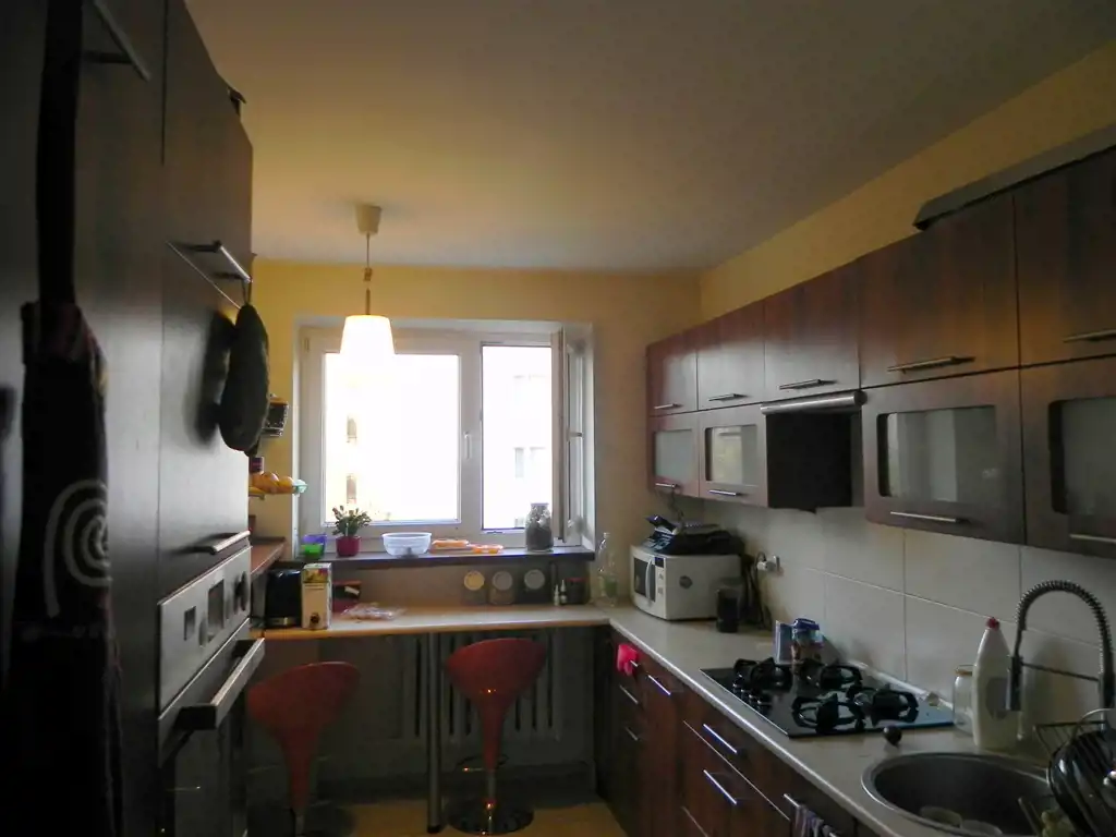 M4- trzy pokojowe na pierwszym piętrze. Kuchnia, łazienka, pokój dzienny, dwie sypialnie, wc oraz piwnica. Do dyspozycji duży balkon 5x1m. W zasobach spółdzielni Viktoria. Nie wymaga dodatkowych nakładów na remont, w związku z czym lokal czeka tylko na nowego właściciela. Na podłodze w pokojach panele podłogowe, a w kuchni i przedpokoju gres. Ogromną zaletą oprócz położenia nieruchomości jest to, że blok wybudowany jest z w całości z cegły i dodatkowo ocieplony styropianem. Okolica bardzo cicha, spokojna i zielona.