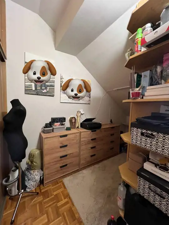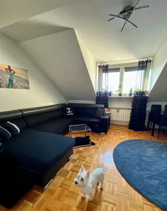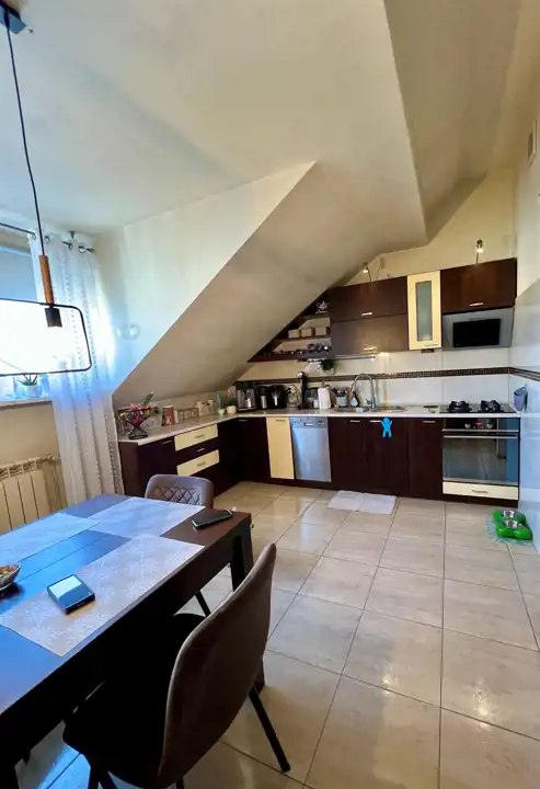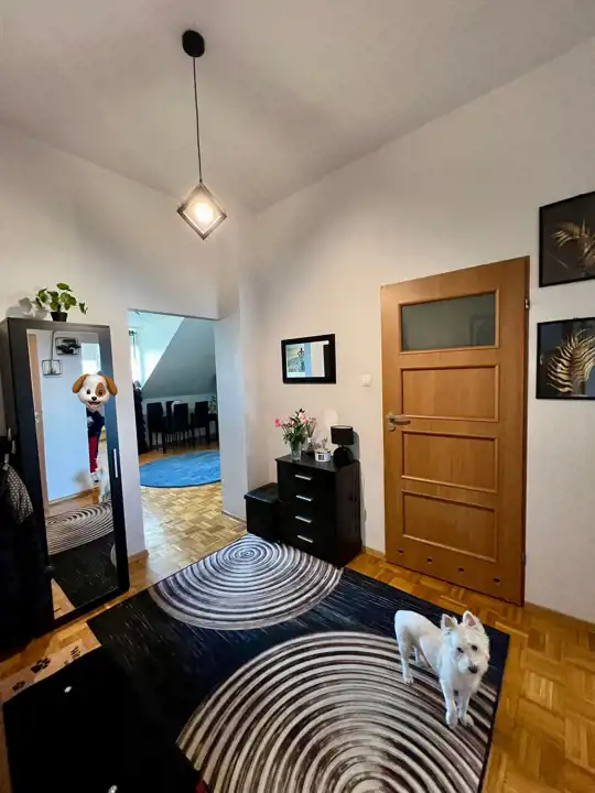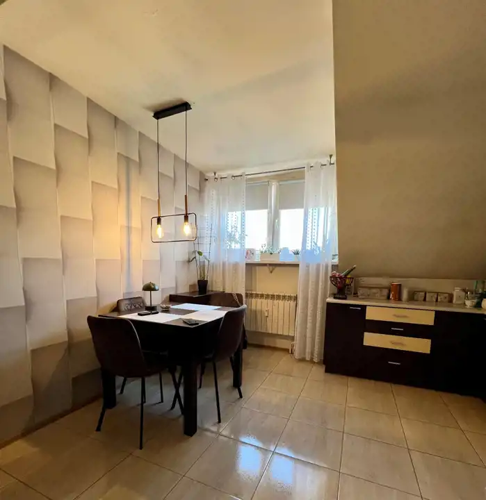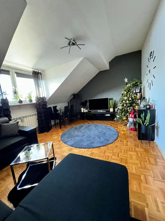 Kuchnia, łazienka, 2 oddzielne pokoje, garderoba. Mieszkanie znajduje się na poddaszu z możliwością adaptacji dodatkowego pomieszczenia (np. dodatkowej sypialni). Sprzedaż wraz z umeblowaniem oraz wszystkimi sprzętami widocznymi na zdjęciach.