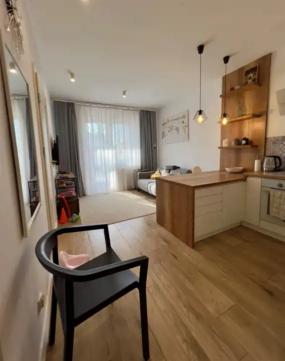Składa się ono z: salonu z aneksem kuchennym, przedpokoju, łazienki z wc, oraz sypialni. Bardzo duży 25 m² taras jest ogromną zaletą nieruchomości. Gotowe do wprowadzenia się od zaraz.
