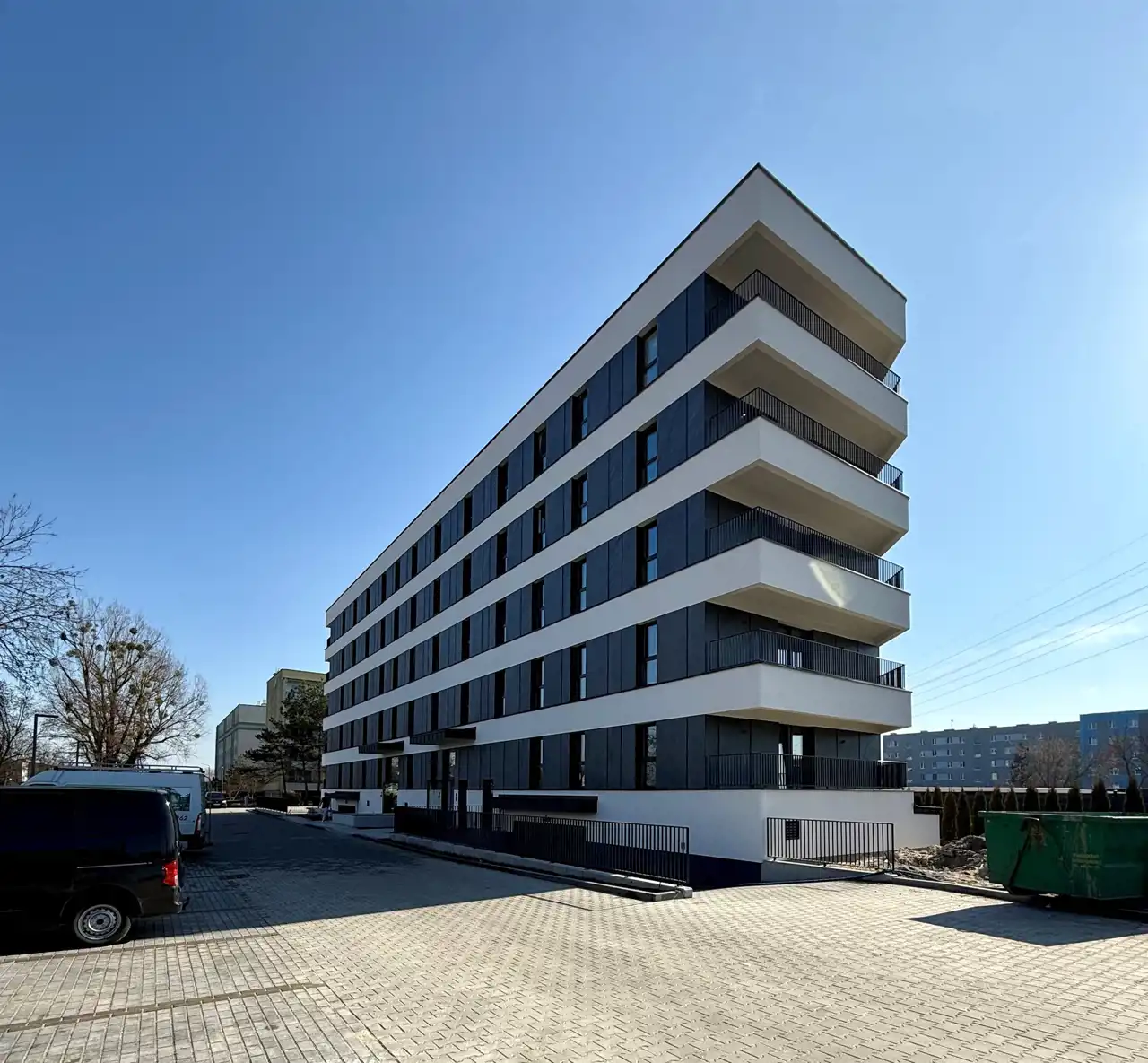 Budynek pięciokondygnacyjny, w którym można znaleźć mieszkania o powierzchni od 30 do 72 m2. Szczególny nacisk został położony na funkcjonalność lokali oraz bardzo wysoki standard wykończenia. Wraz z budową bloku powstanie pełna infrastruktura, z drogami wewnętrznymi, alejkami, terenem zielonym . W pobliżu inwestycji znajdziemy: przystanek MZK, stacje benzynową, Kaufland, myjnie samochodową, szkoły, przedszkole, punkty usługowe, przychodnie, apteki, kościół, oraz liczne sklepy. Wszystko, co najważniejsze jest w zasięgu ręki, codzienne zakupy możesz zrobić blisko domu. Korzystamy z nowoczesnych rozwiązań elewacyjnych w realizowanym budynku oraz zapewniamy najwyższy standard wykończenia stosowany na lokalnym rynku.
