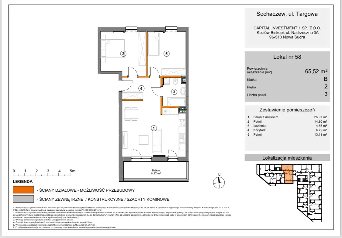 - Charakterystyka mieszkania 65.52 m2, 3 pokoje