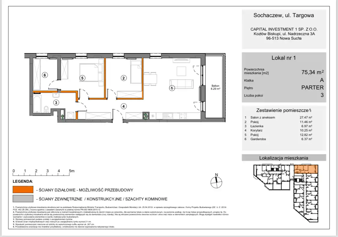 - Charakterystyka mieszkania 75.34 m2, 3 pokoje