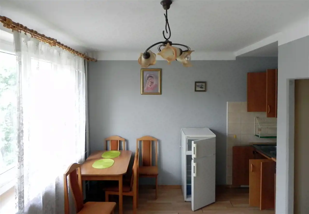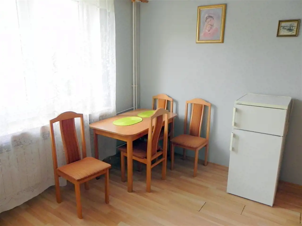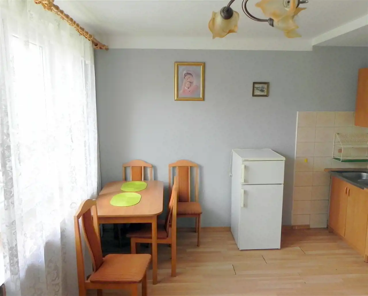 Umeblowanie/wyposażenie: Mieszkanie umeblowane i wyposażone. W pokoju dziennym duża, pojemna szafa, komoda, telewizor. Kuchnia w zabudowie ze sprzętem AGD ( lodówka, kuchenka gazowa 2 palniki) oraz duży stół z czterema krzesłami. W łazience kabina prysznicowa, umywalka, pralka oraz wc. W przedpokoju lustro i wieszak na ubrania oraz pojemna szafa.