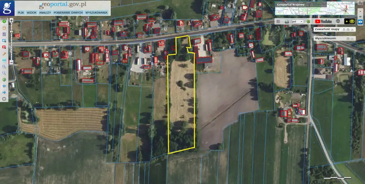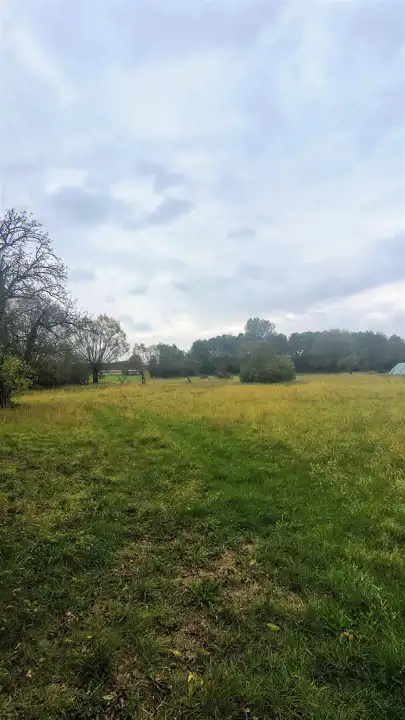 Na sprzedaż duża działka z możliwością zabudowy zagrodowej o powierzchni 14100 m² (1,41 ha) położona w samym centrum wsi z przedwojennym domem z bala drewnianego do rozbiórki, co otwiera drogę do budowy nowego domu. Dojazd bezpośrednio drogą asfaltową. Prąd i wodociąg w drodze. Działka sucha i płaska, z ładnymi drzewami. Przy końcu działki rów melioracyjny. Na drugiej części działki dopuszczona jest zabudowa związana z rolnictwem (np. budynki gospodarcze, magazyny, stodoły), co jest idealne dla osób planujących rozszerzenie działalności rolniczej. Wokół pola i lasy, niedaleko do Wkry.