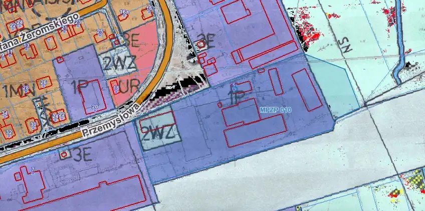 Przeznaczenie działki to działalność produkcyjna oraz składy.