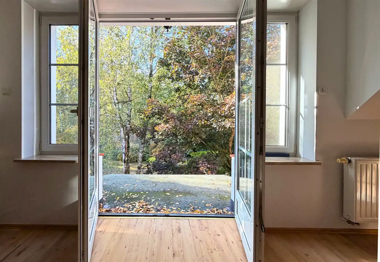 Rozległa, ogrodzona działka (5100 m²) z ogrodem, starannie dobranymi nasadzeniami i pełną prywatnością. Miejsce sprzyja relaksowi, rodzinie i rekreacji.