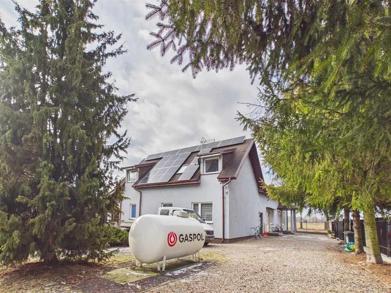 - teren ogrodzony (brama wjazdowa + furtka)