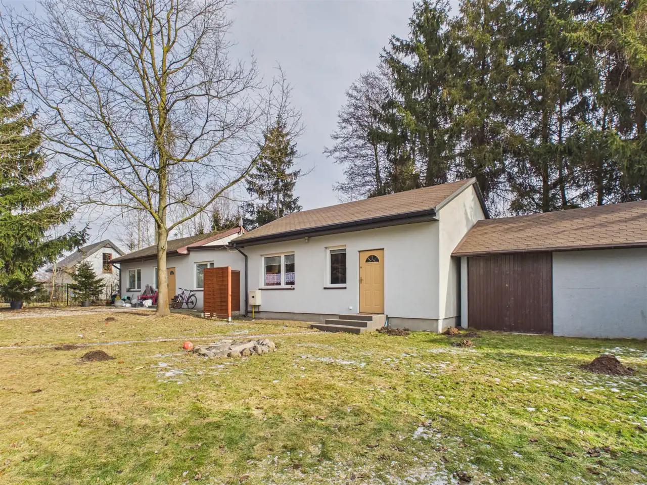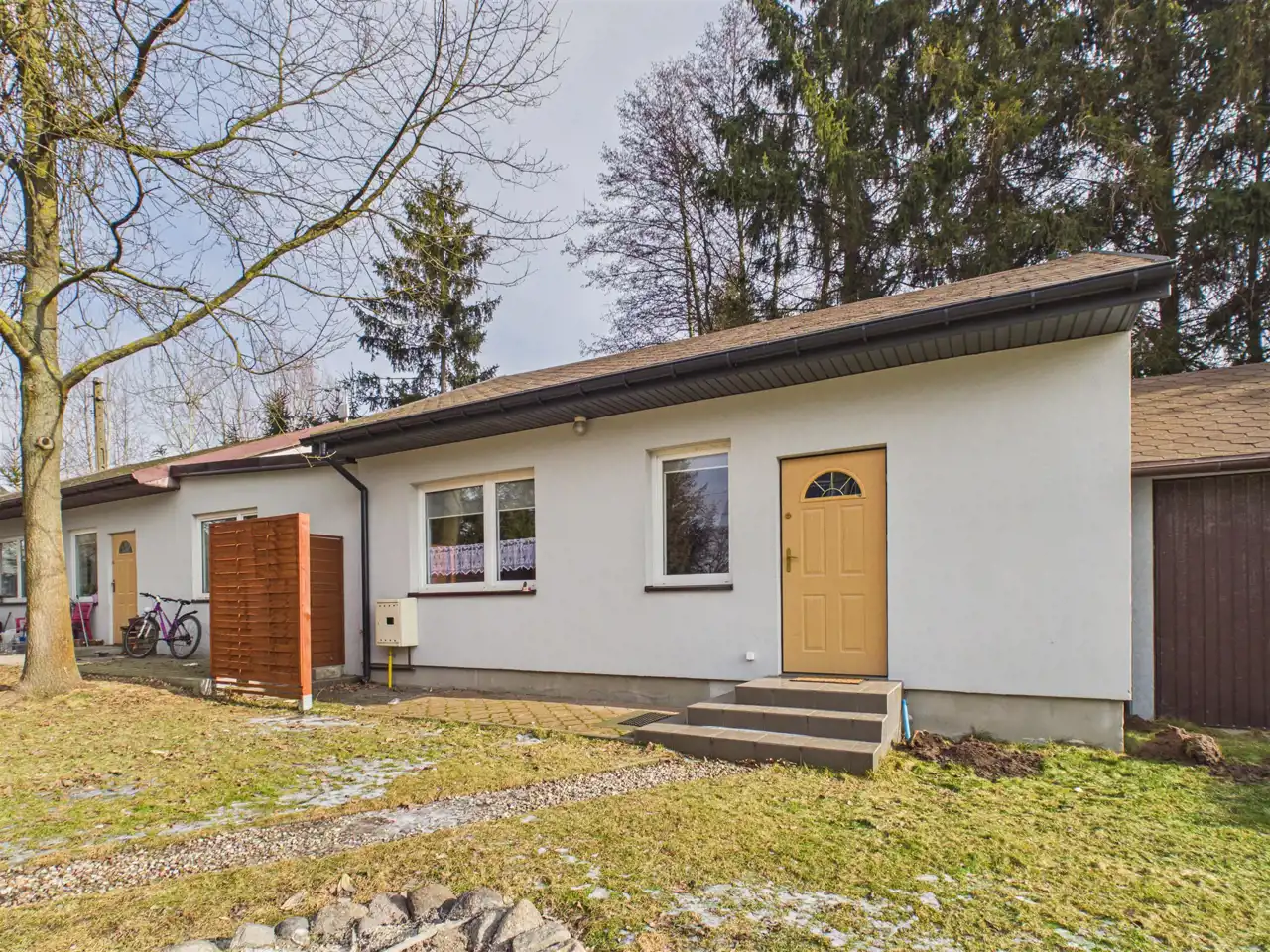 - a w nim: 3 odrębne mieszkania każde z osobnym, niezależnym wejściem