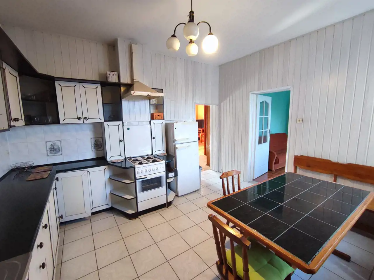 Parter domu zajmują: 3 sypialnie, osobna duża kuchnia z jadalnią oraz łazienka z WC.