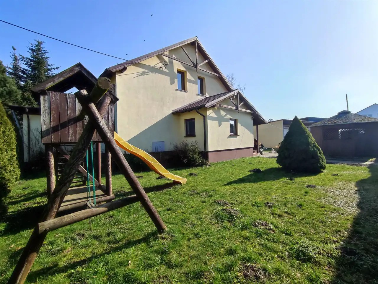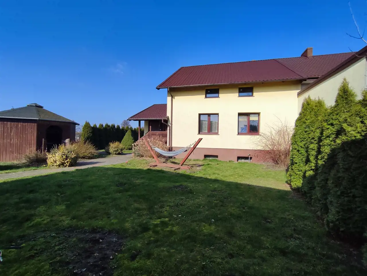 Dom gotowy do wprowadzenia, stan dobry. Nieruchomość wyposażona w meble i sprzęty AGD.