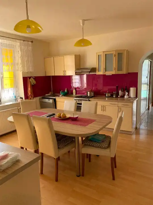 Trzy niezależne mieszkania, lokal gastronomiczny Pizzeria (100m2), sala bankietowa (60m2), kawalerka (32m2), pomieszczenie biurowe (15m2), garaże wolno stojące (2x 25m2), lokal użytkowy (47m2).