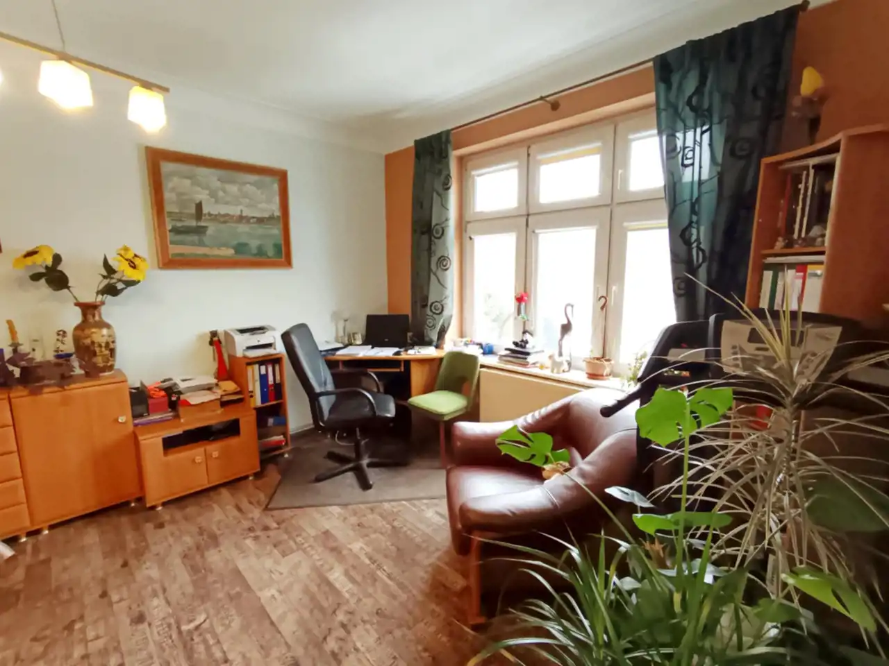 dwóch sąsiadujących ze sobą pokoi dziennych o powierzchni 30 m² i 28 m² (idealnych jako salon i jadalnia lub salon i gabinet),