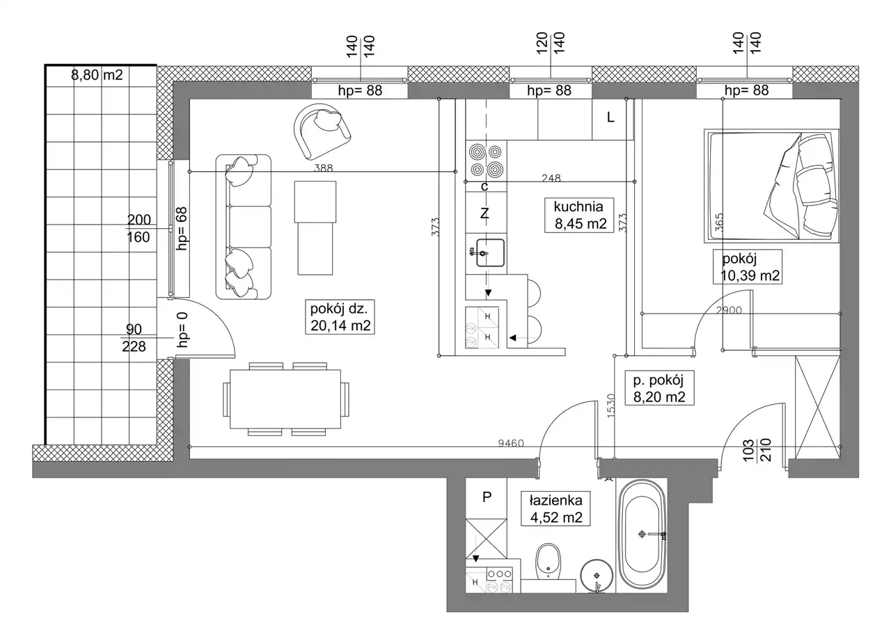 - Charakterystyka mieszkania 52.5 m2, 2 pokoje