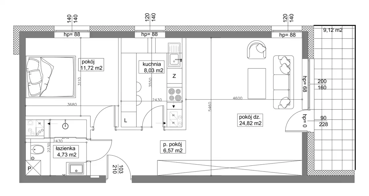- Charakterystyka mieszkania 57.12 m2, 2 pokoje