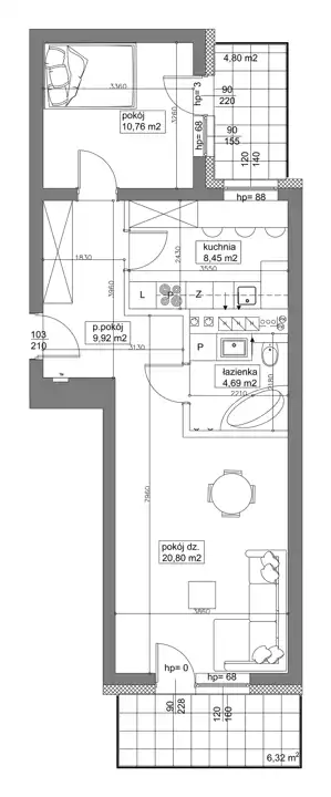 - Charakterystyka mieszkania 55.16 m2, 2 pokoje