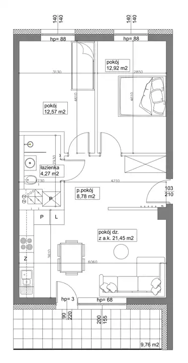 - Charakterystyka mieszkania 60.8 m2, 2 pokoje