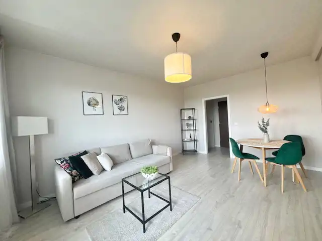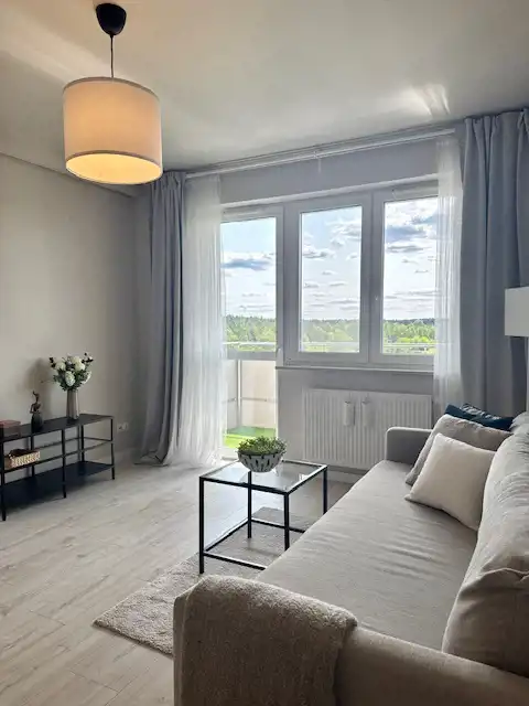 Mieszkanie jasne, przestronne, przytulne, funkcjonalne. Mieszkanie posiada salon z wyjściem na balkon, z rozkładaną kanapą, oddzielną kuchnię oraz łazienkę.
