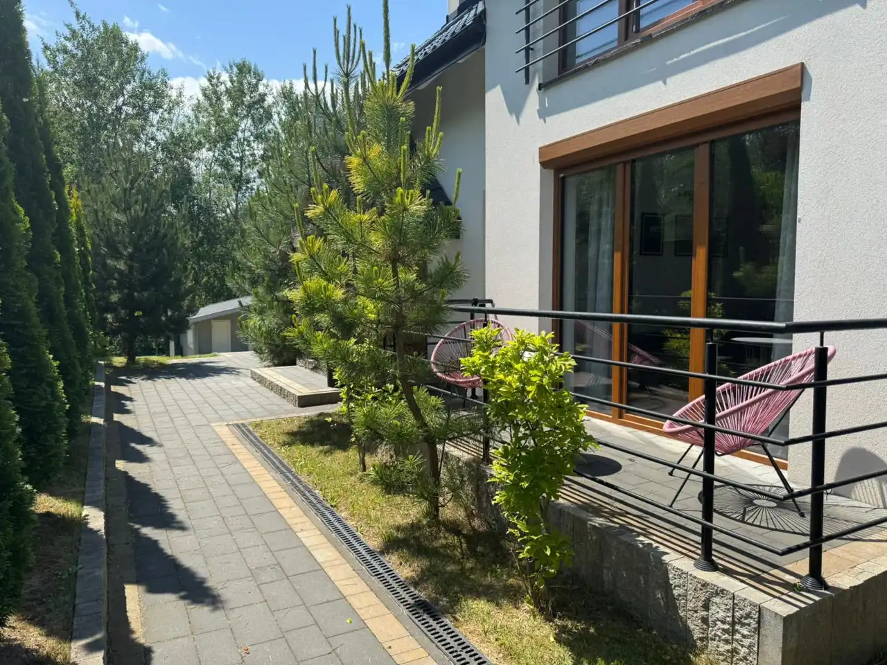 Teren wokół budynku jest ładnie zagospodarowany z dbałością o zachowanie przestrzeni do wypoczynku dla gości w nim przebywających.