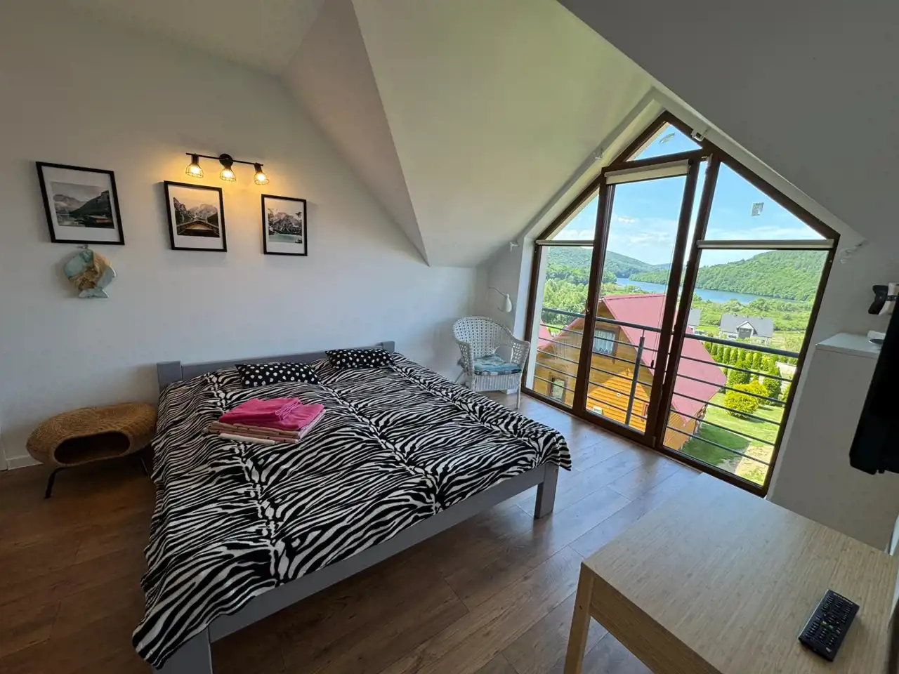 Budynek posiada siedem niezależnych apartamentów każdy z aneksem kuchennym, komfortowo wyposażony, każdy z dużym przeszkleniem i ładnym widokiem, z części apartamentów widok na jezioro Myczkowskie.