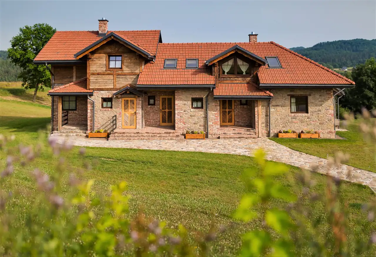 Przy budowie wykorzystane zostały surowce takie jak drewno z łemkowskich chat, cegła z wiekowej plebanii oraz kamień ze starych piwnic i okolicznych kamieniołomów. Każdy wiekowy element, który został wykorzystany do budowy domu dodaje charakter tej wyjątkowej nieruchomości.