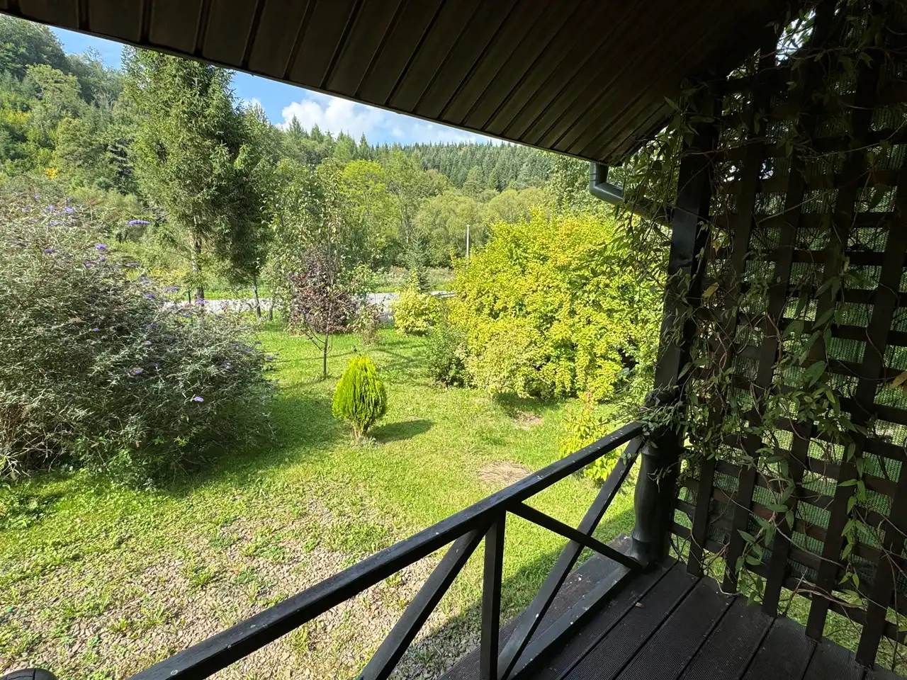 Teren działki ładnie zagospodarowany z licznymi nasadzeniami w postaci krzewów owocowych : aronia, świdośliwy, porzeczki, jagody kamczackie, borówki, jeżyny oraz kolorowych kwiatów. Pozostawiona została również cześć za budynkami do własnej aranżacji np. placu zabaw, ogrodu czy małego sadu. W pobliżu działki przepływa rzeka Wołkowyjka w odległości około 20 m od domu – słychać szum wody.