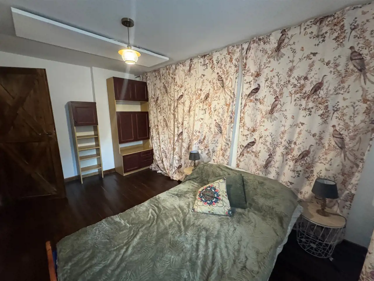 - Parter: kuchnia, pokój dzienny, sypialnia, łazienka, spiżarnia
