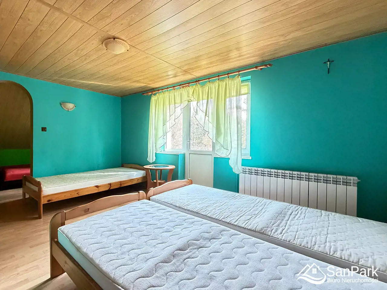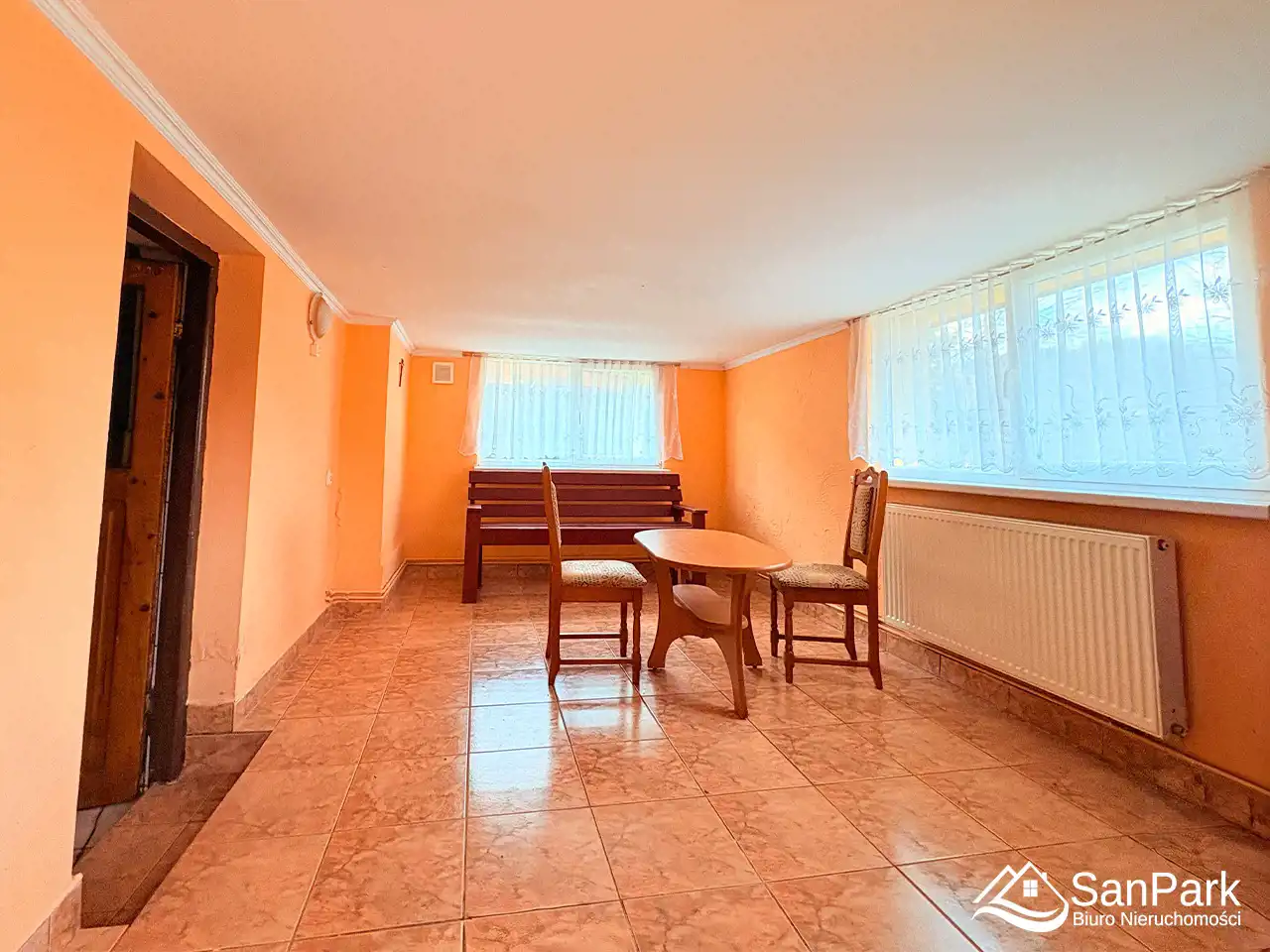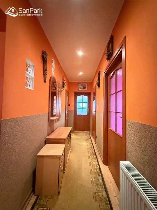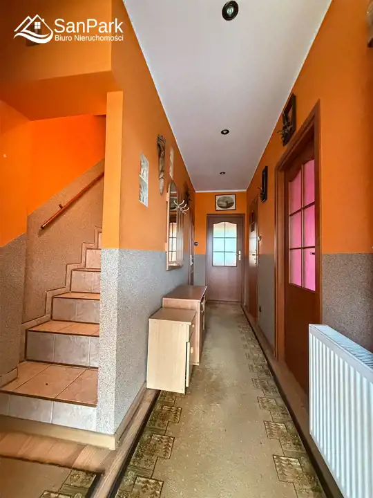 Dzięki takiemu rozkładowi dom idealnie nadaje się pod wynajem dla turystów, agroturystykę lub kilka niezależnych mieszkań. Działka o powierzchni 20 arów jest płaska i ogrodzona, z możliwością urządzenia ogrodu, strefy wypoczynkowej lub parkingu dla gości. Na posesji znajduje się również duży budynek gospodarczy drewniano-murowany o powierzchni ok. 225 m², który może pełnić funkcję garażu, magazynu, warsztatu lub zaplecza pod działalność turystyczną.