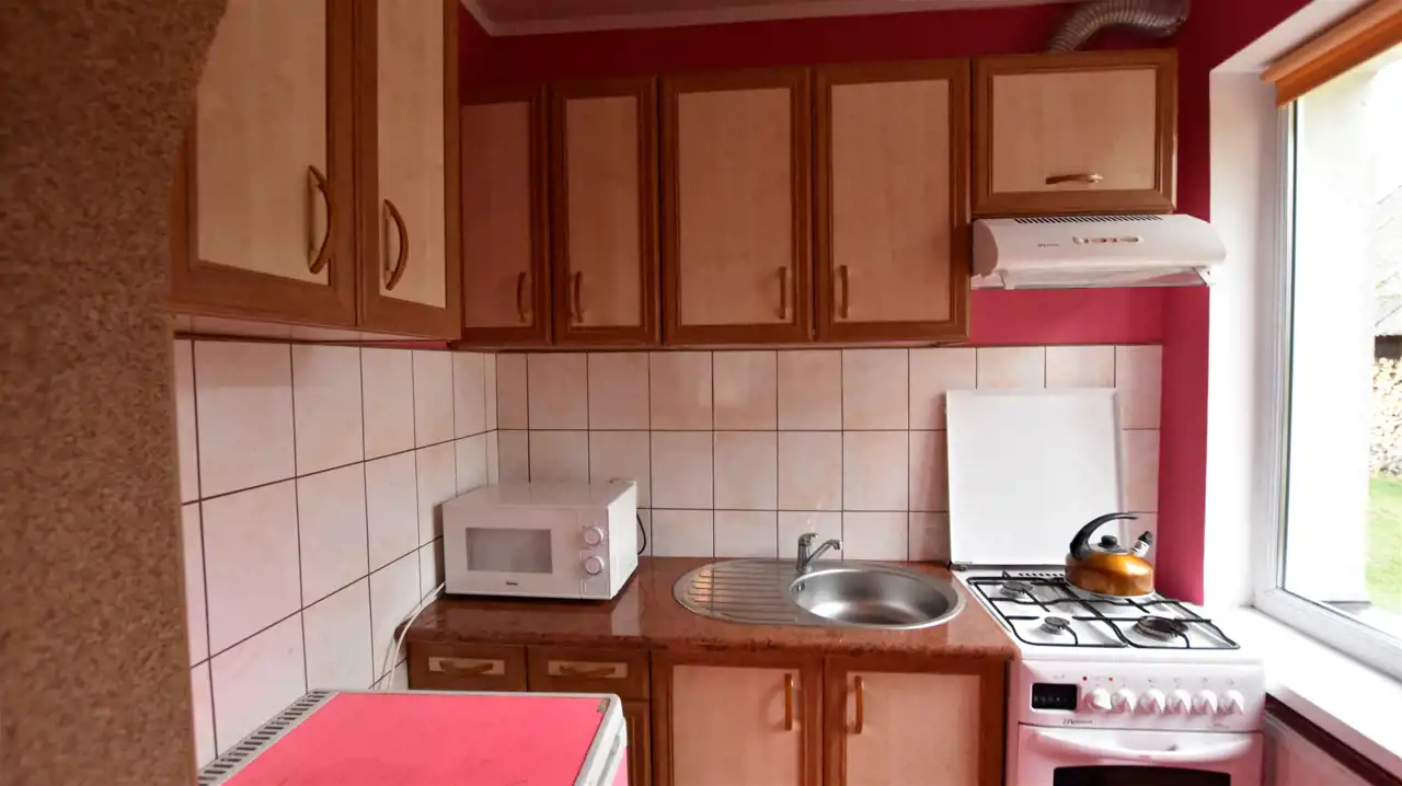 wiatrołap, kuchnia z tradycyjnym piecem kaflowym, łazienka, kotłownia, 2 pomieszczenia pełniące funkcję pokoi