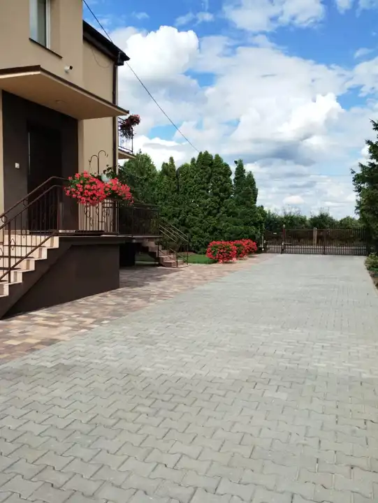 5. Teren w pełni wybrukowany! Podwórze i podjazdy wyłożone kostką – zapomnij o błocie, ciesz się czystością i estetyką wokół domu i budynków gospodarczych.