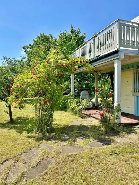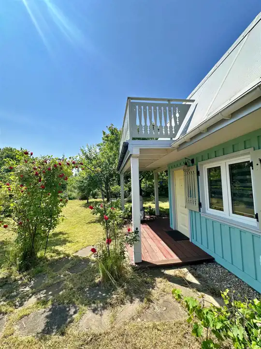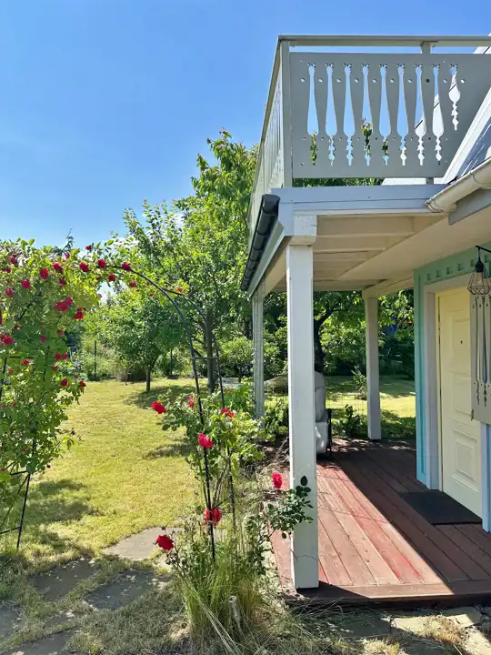 Przy budynku szklarnia samo podlewająca, miejsce na grill, kawę i nie tylko.
