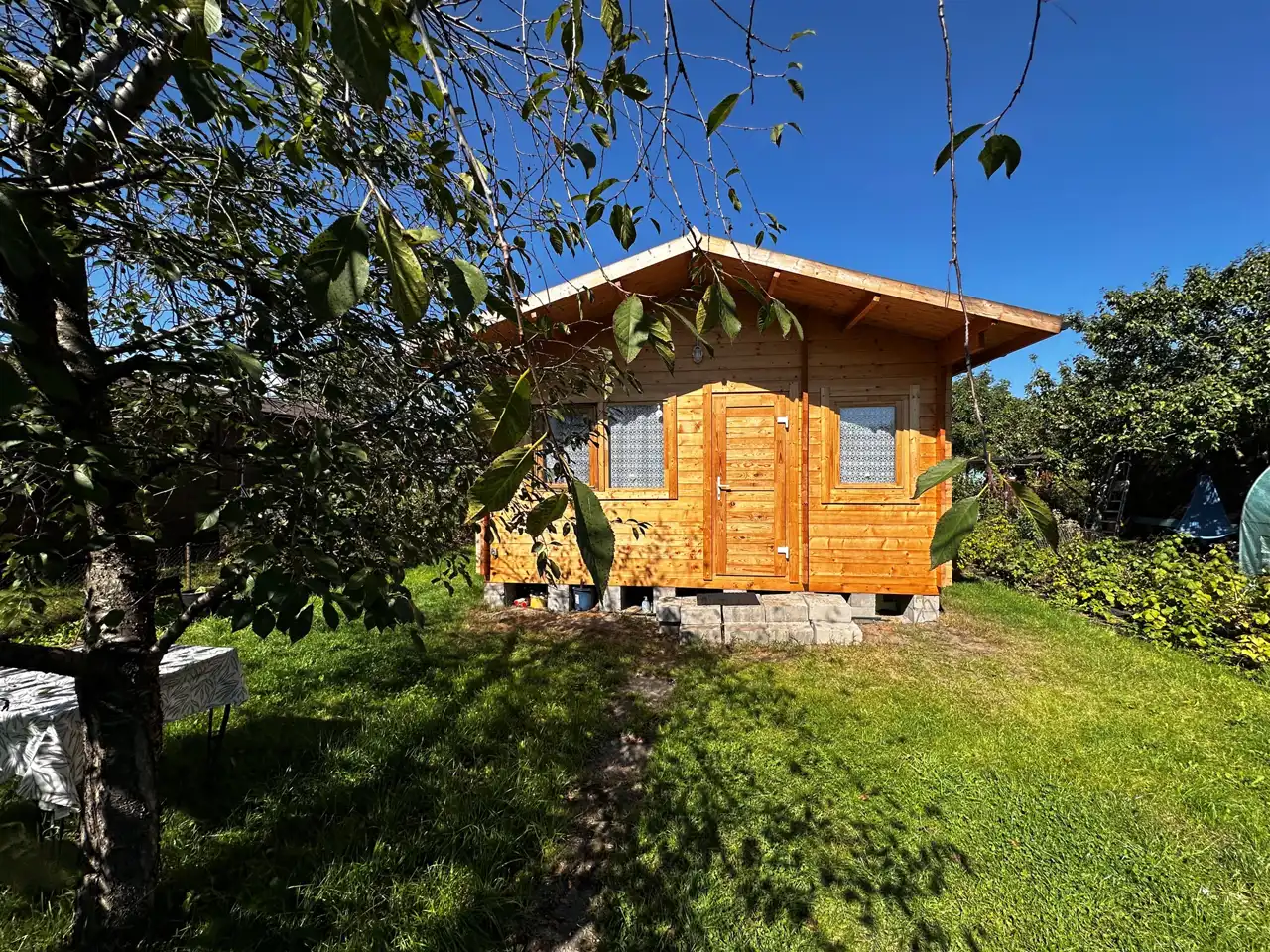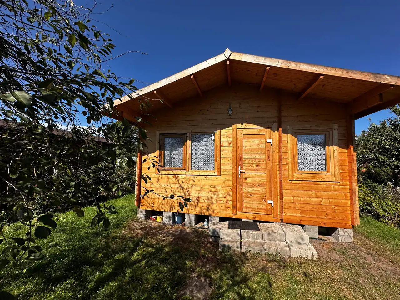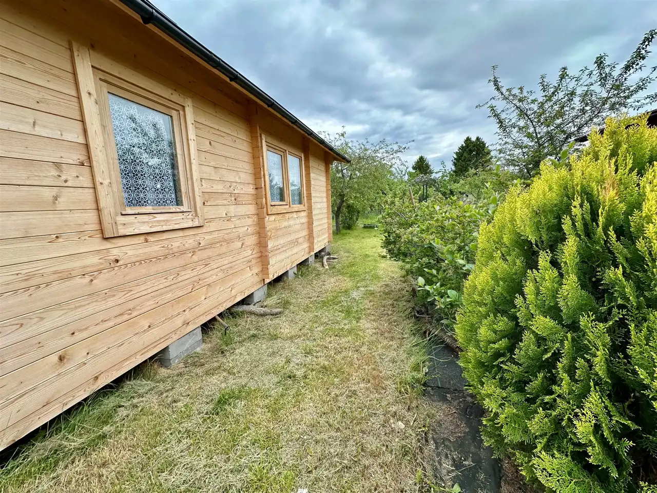 Domek o powierzchni 35 m2 postawiony został na początku lipca 2024 - drewniany domek z sosny (grubość deski 46 mm). Jak wiadomo sosna jest bardzo zdrowa, dobrze się nią oddycha, a także duży plus: komary nie lubią zapachu sosny.