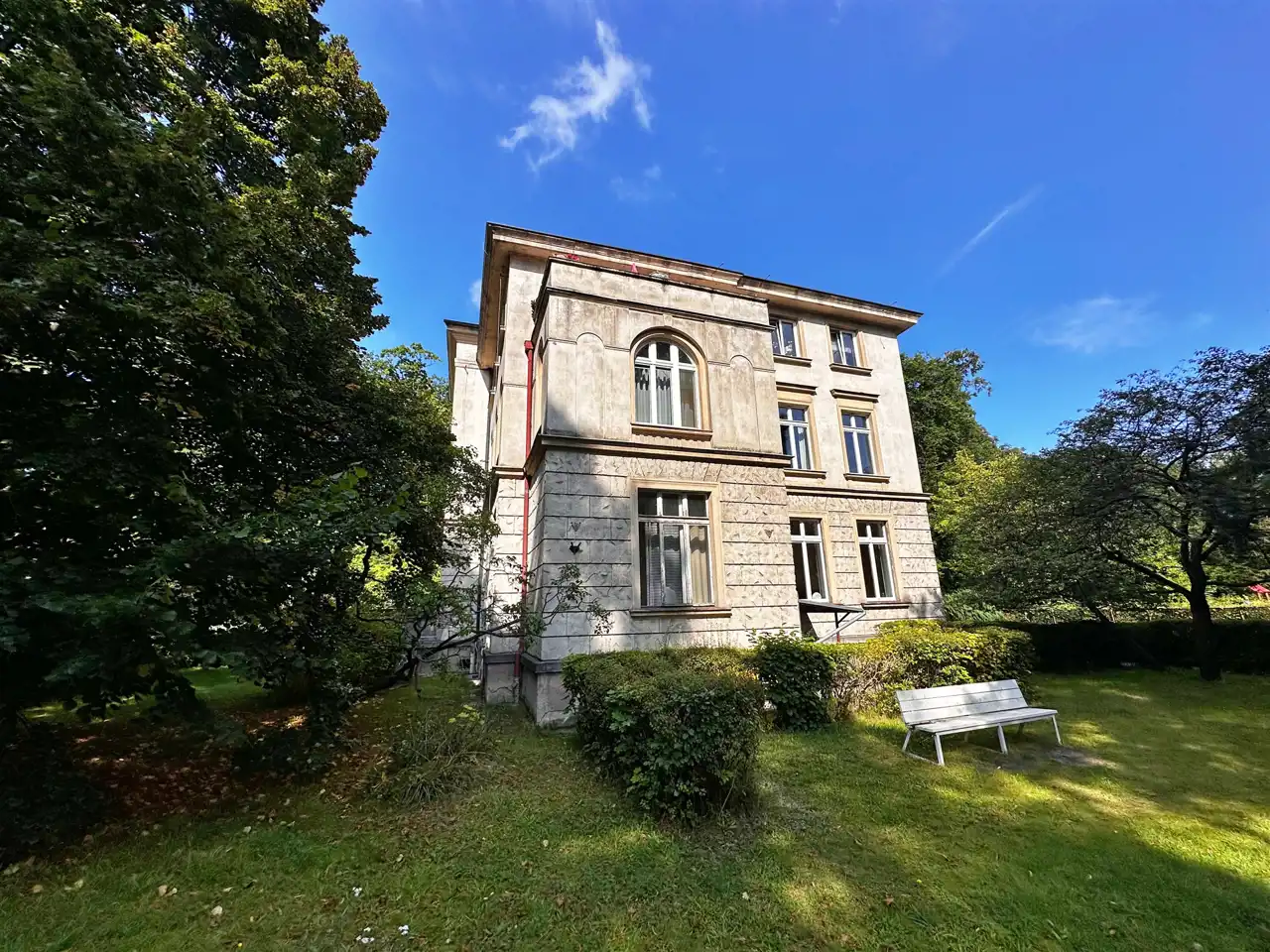Powstała w 1896 poprzez rozbudowę przez Edwarda Herbsta wzniesionego w 1878 położonego przy ówczesnej Schulstraße 15, letniskowego domu armatora Johannesa Icka. Architektonicznie nawiązywała do rezydencji Herbstów w łódzkim Księżym Młynie. Początkowo Herbst mieszkał w niej w sezonie letnim, po I wojnie światowej głównie w niej. Edward Herbst zmarł w 1921, zaś rodzina mieszkała w willi do śmierci w 1939 jego żony Matyldy Herbst. W 1940 willa została sprzedana Rzeszy Niemieckiej za sumę 422 500 marek i przekazana wojskowym władzom niemieckim, które prowadziły w niej do 1941 lazaret, i użyczona później gen. piechoty Bodewinowi Keitlowi, młodszemu bratu feldmarszałka Wilhelma Keitla.Wśród gości rezydencji byli m.in.: następca tronu Niemiec Wilhelm Hohenzollern oraz Wojciech Kossak (1913)