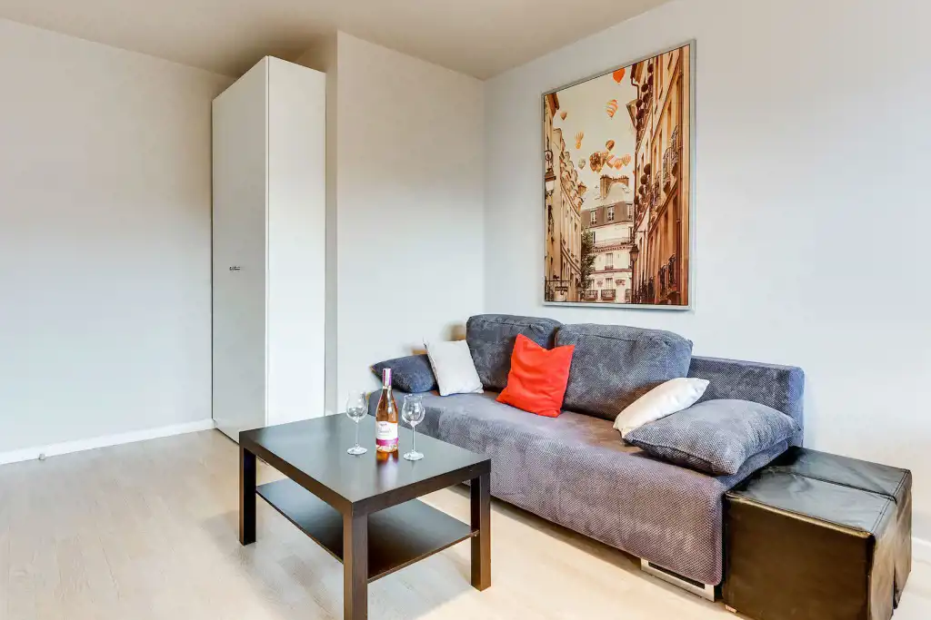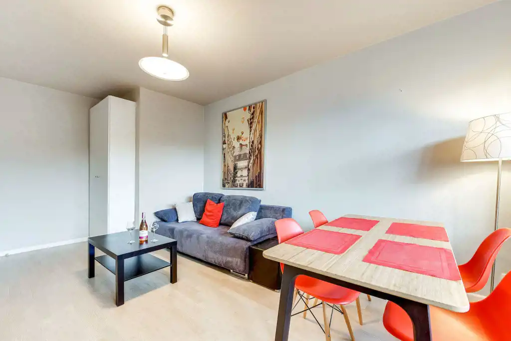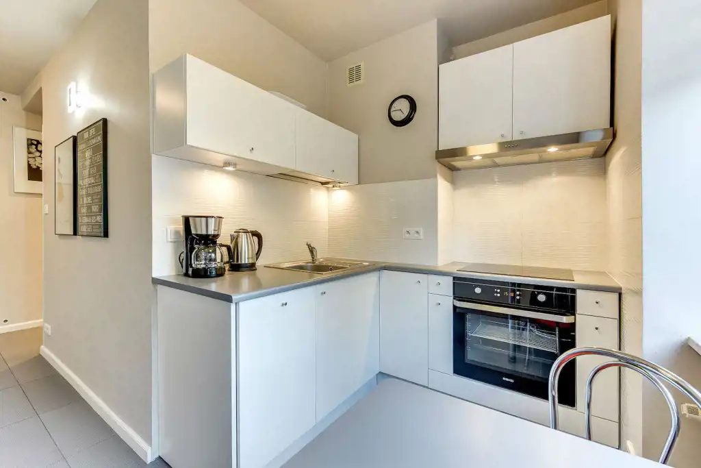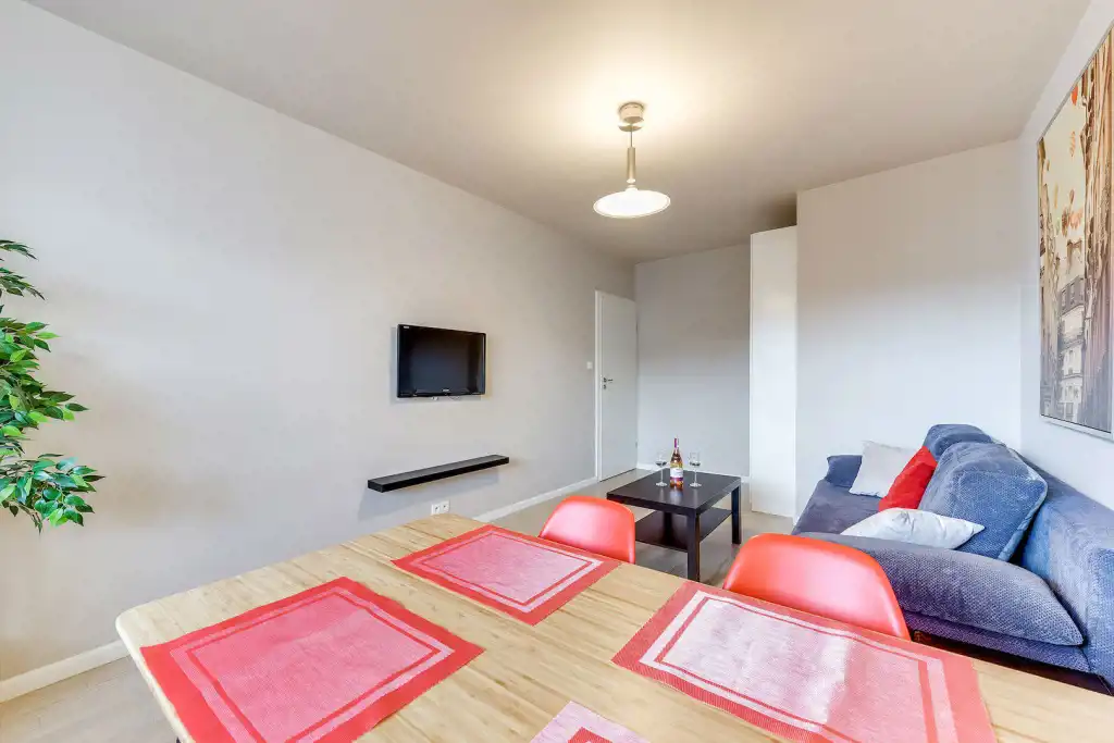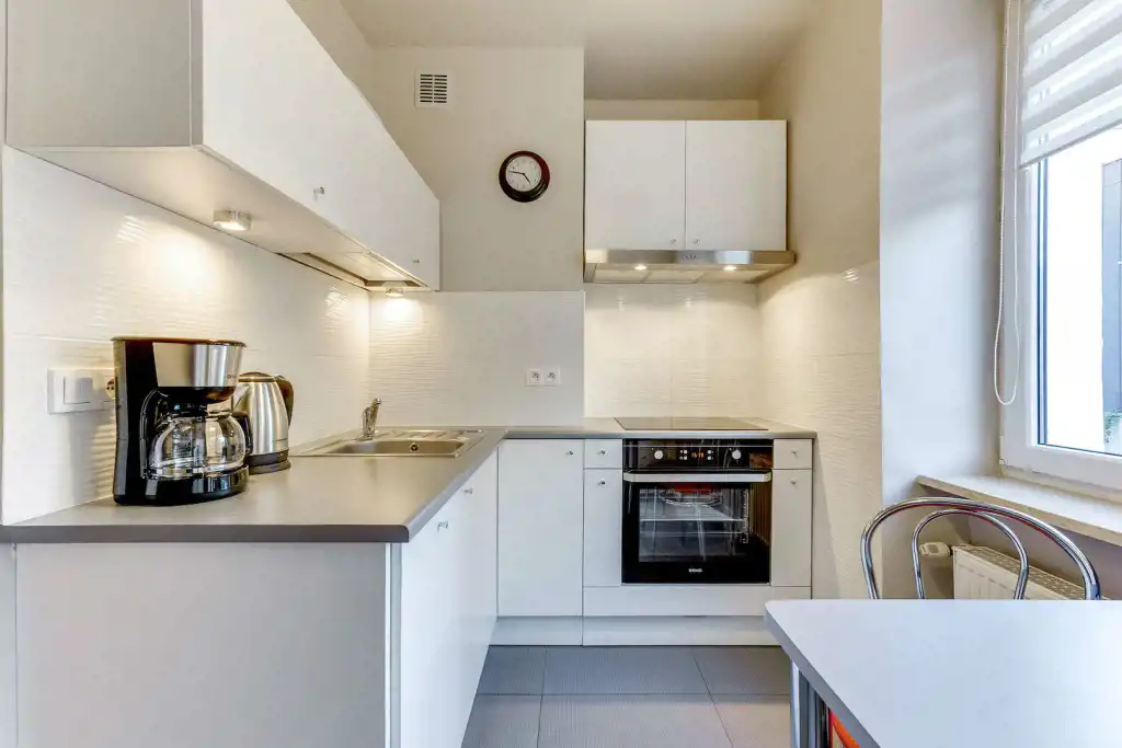 Apartament jest w pełni umeblowany o wysokim standardzie widocznym na zdjęciach.