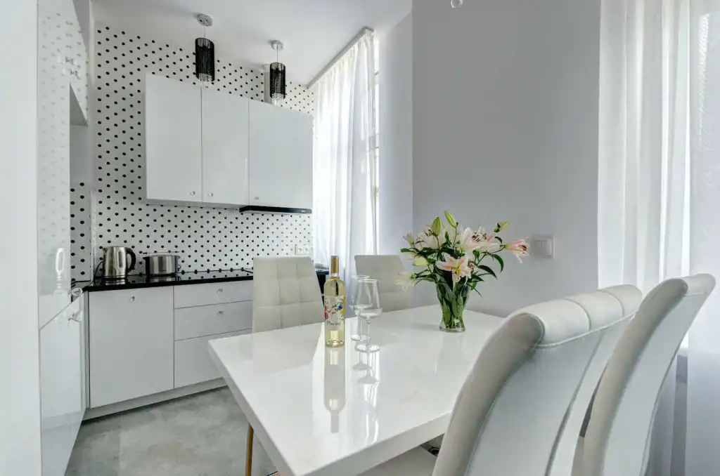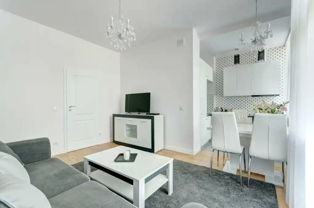Apartament jest w pełni umeblowany o wysokim standardzie widocznym na zdjęciach.