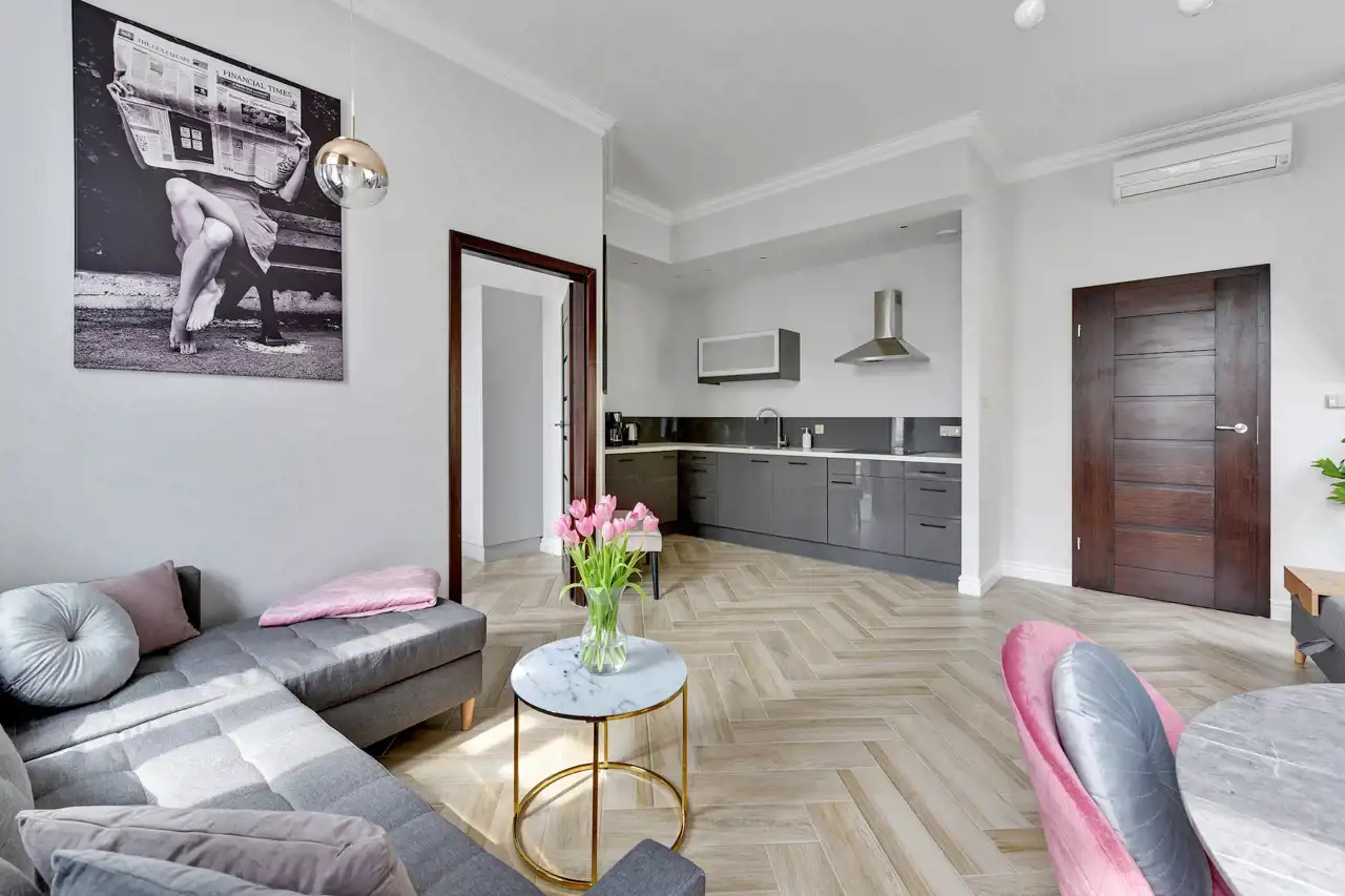 Apartament dwupokojowy przestronny o powierzchni ok. 50m2 składający się z następujących pomieszczeń:
