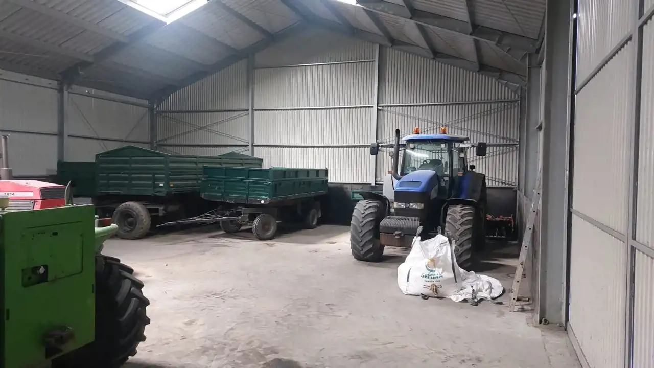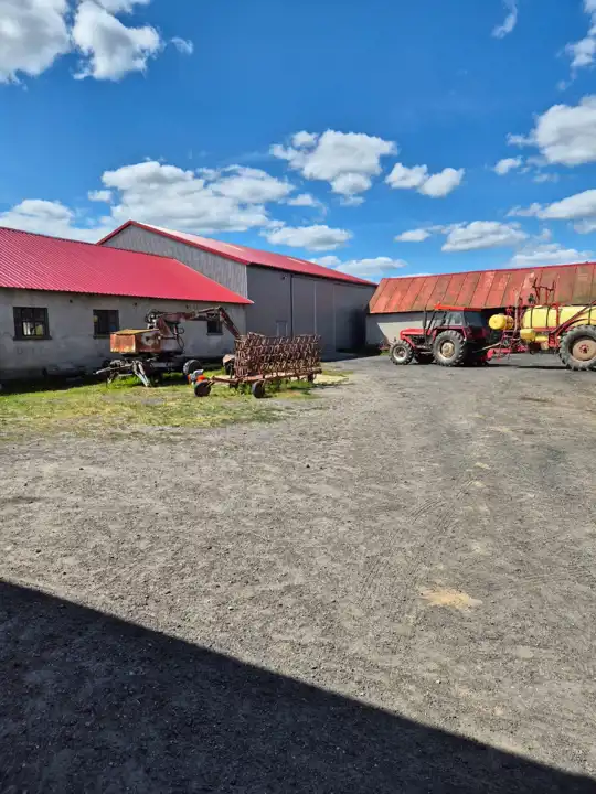 Obecny właściciel posiada maszyny rolnicze cztery różne ciągniki , ładowarkę , pługi , agregat uprawowo - siewny , aktywna brona , ładowacz , przyczepy , kultywator , brony. Proponowana cena kupna maszyn rolniczych stanowi kwotę 400 000 zł. Specyfikację urządzeń , maszyn przekażemy indywidualnie osobą zainteresowanym.