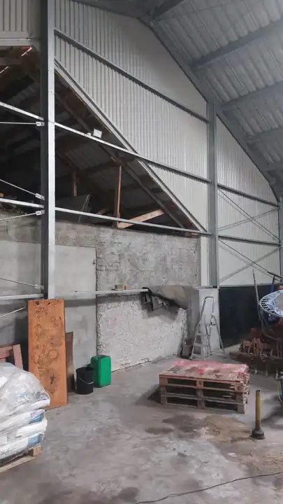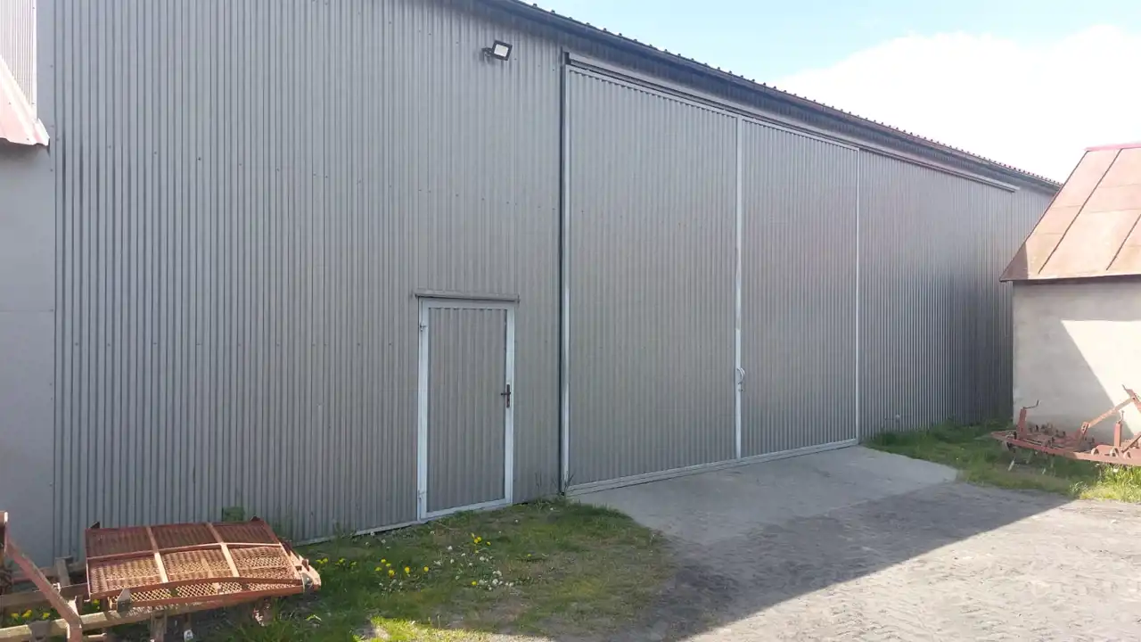 6. Nowa Hala konstrukcja stalowa o wymiarach 15 mb na 20 mb wysoka na około 4 mb. Rok budowy 2021.