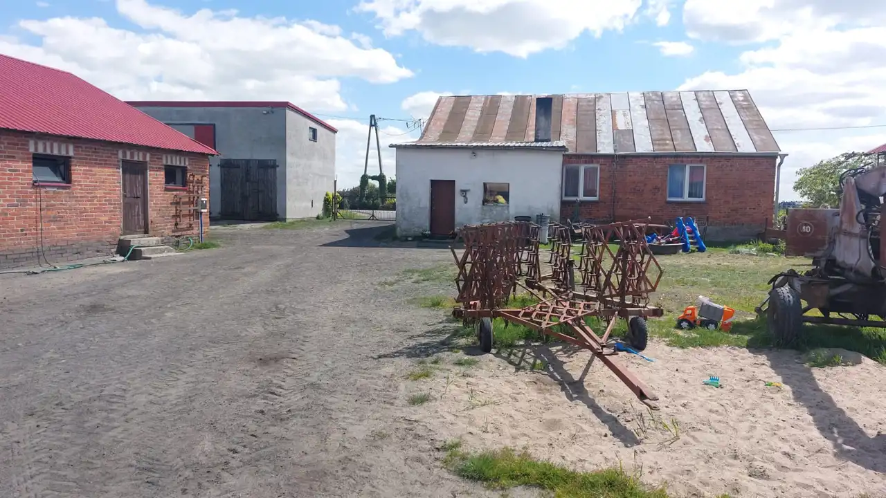 1. DOM parterowy około 100 m2 budynek z czerwonej cegły obecnie wynajmowany przez najemców przynoszących regularny przychód dla gospodarstwa domowego. Dom składa się z aneksu kuchennego ( otwarta przestrzeń kuchnia , jadalnia ) , trzy sypialnie , łazienka , kotłownia. Budynek ogrzewany kotłem na mix , grzejniki.